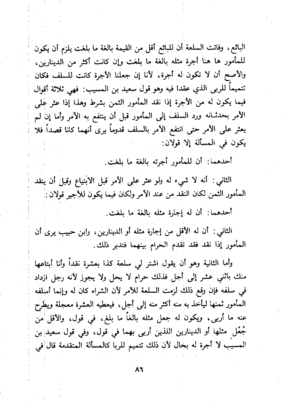 تتميماً للربى الذي عقدا فيه وهو قول سعيد بن المسيب: فهي ثلاثة أقوال