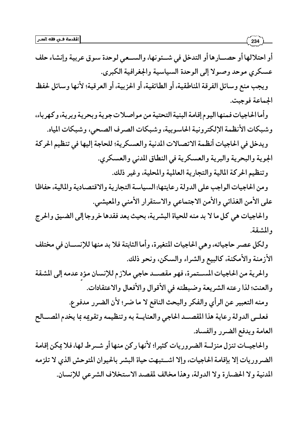 ولكل عصر حاجياته، وهي الحاجيات المتغيرة، وأما الثابتة فلا بد منها للإنسان في مختلف الأزمنة والأمكنة، كالبيع والشراء والسكن، ونحو ذلك.