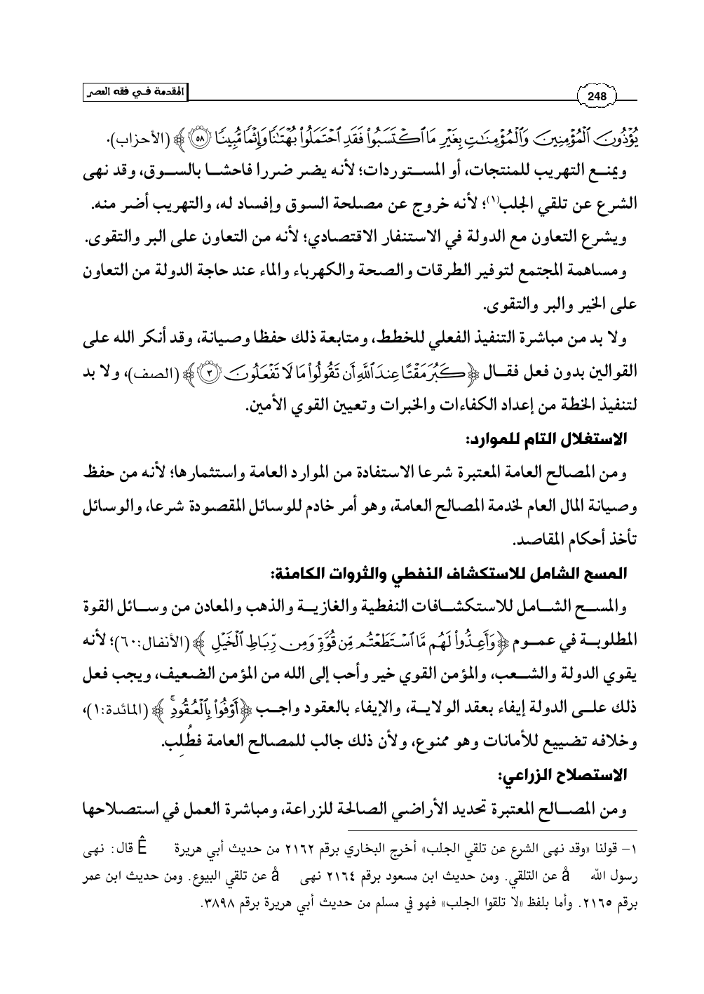 ومن المصالح المعتبرة تحديد الأراضي الصالحة للزراعة، ومباشرة العمل في استصلاحها