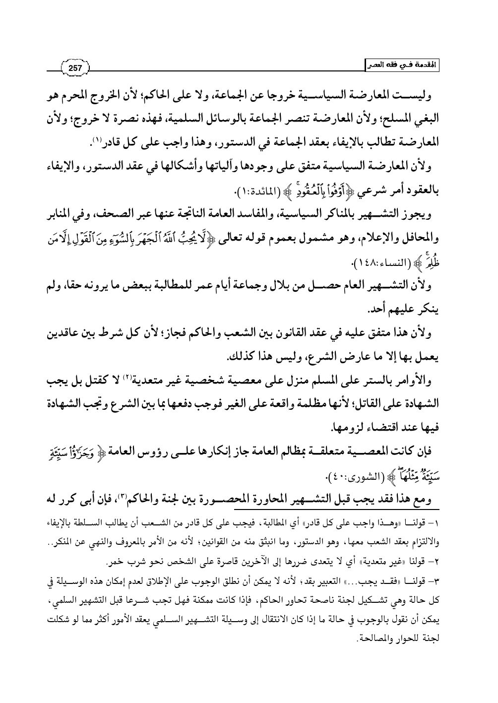 (¬1) - قولنا «وهذا واجب على كل قادر» أي المطالبة، فيجب على كل قادر من الشعب أن يطالب السلطة بالإيفاء والالتزام بعقد الشعب معها، وهو الدستور، وما انبثق منه من القوانين؛ لأنه من الأمر بالمعروف والنهي عن المنكر ..