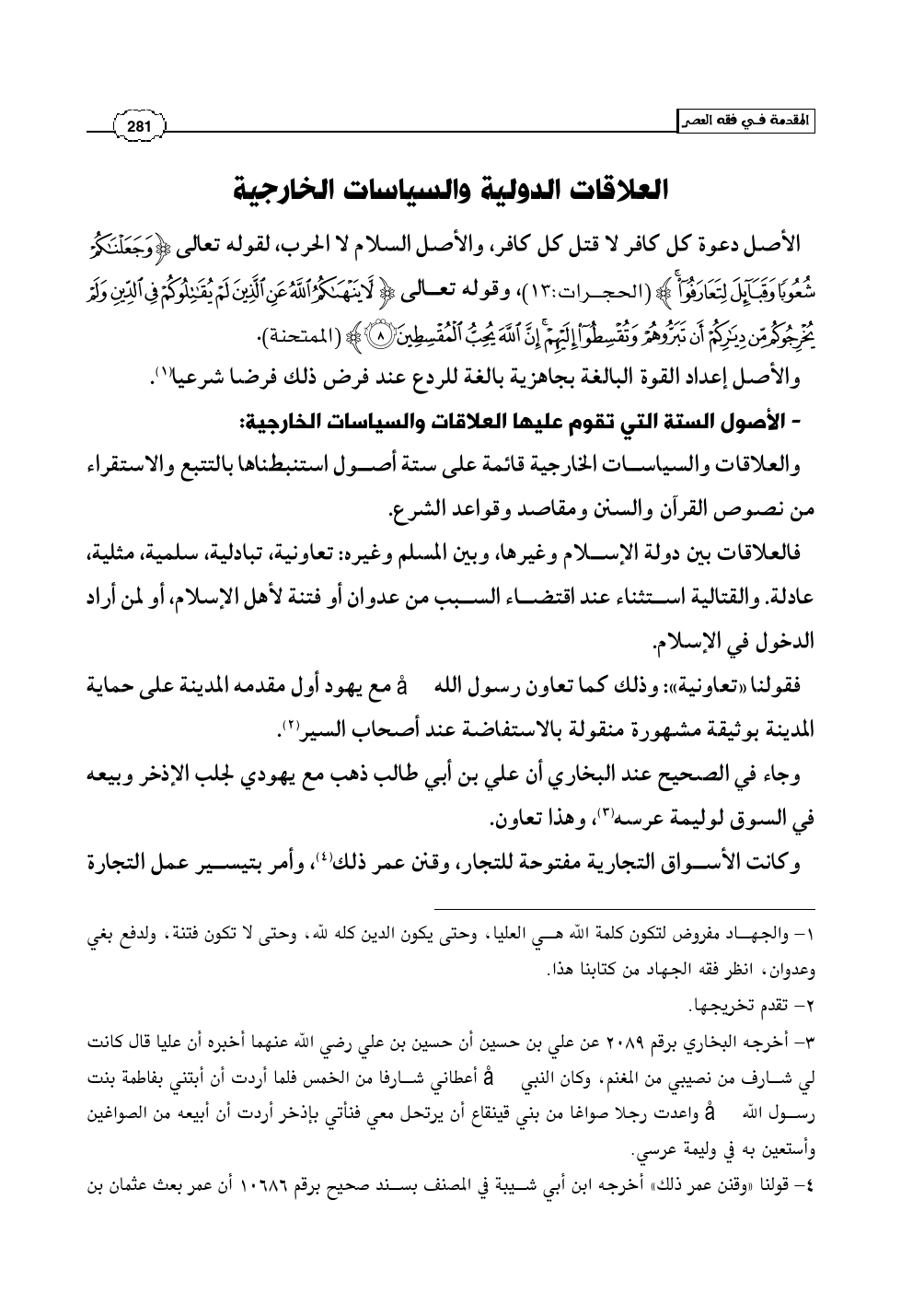 والعلاقات والسياسات الخارجية قائمة على ستة أصول استنبطناها بالتتبع والاستقراء من نصوص القرآن والسنن ومقاصد وقواعد الشرع.