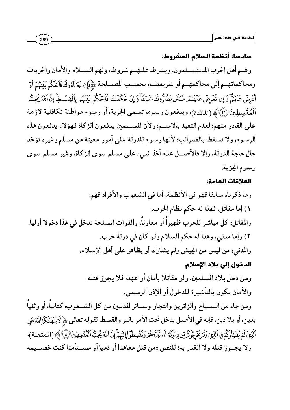 ومن جاء من السياح والزائرين والتجار وسائر المدنيين من كل الشعوب، كتابياً، أو وثنياً بدين، أو بلا دين، فإنه في الأصل يدخل تحت الأمر بالبر والقسط لقوله تعالى (لا يَنْهَاكُمُ اللَّهُ عَنِ الَّذِينَ لَمْ يُقَاتِلُوكُمْ فِي الدِّينِ وَلَمْ يُخْرِجُوكُم مِّن دِيَارِكُمْ أَن تَبَرُّوهُمْ وَتُقْسِطُوا إِلَيْهِمْ إِنَّ اللَّهَ يُحِبُّ الْمُقْسِطِينَ) (الممتحنة: 8).