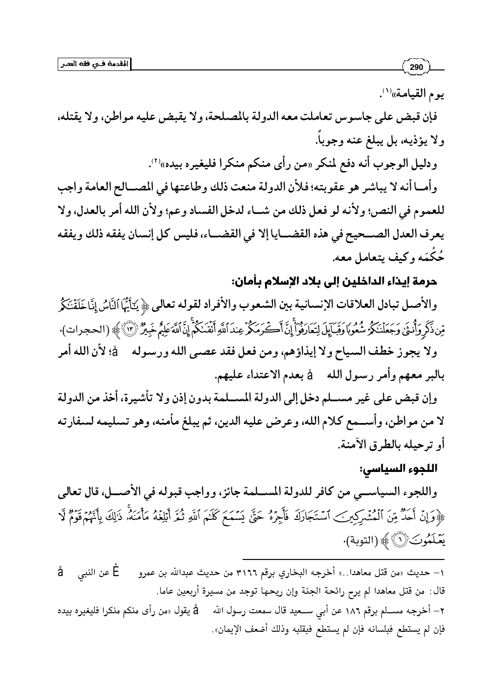 حرمة إيذاء الداخلين إلى بلاد الإسلام بأمان: