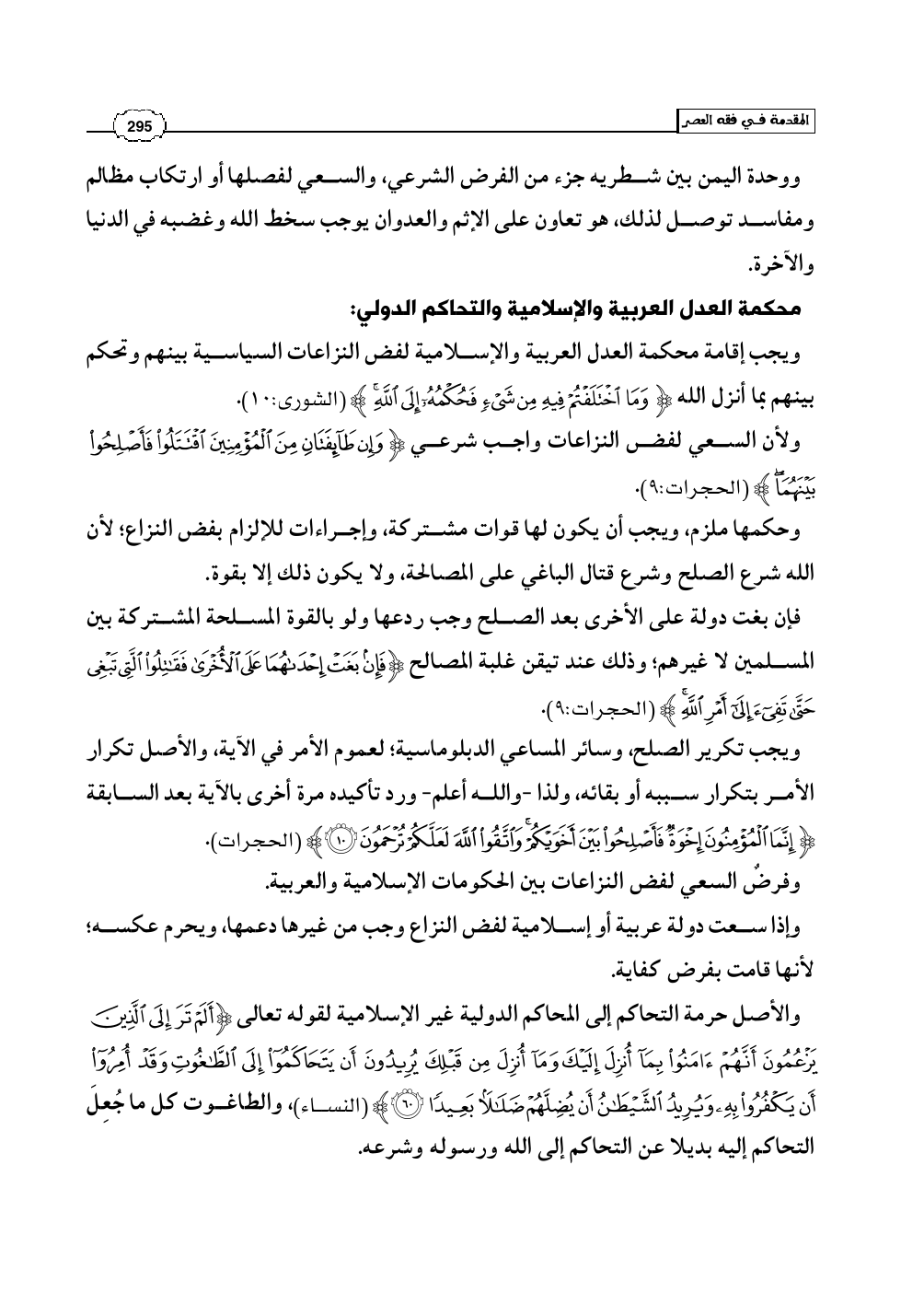 وفرضٌ السعي لفض النزاعات بين الحكومات الإسلامية والعربية.