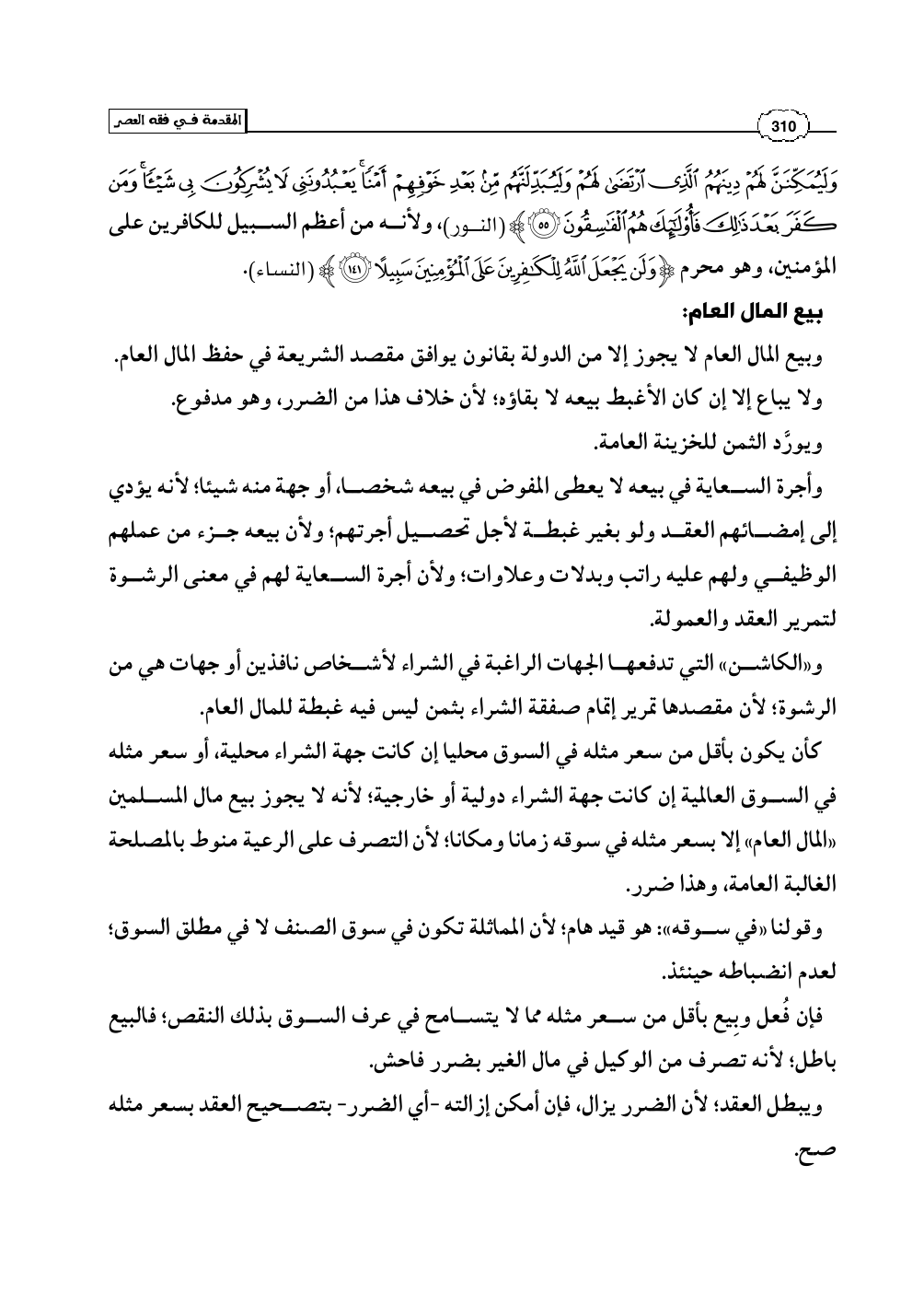 وبيع المال العام لا يجوز إلا من الدولة بقانون يوافق مقصد الشريعة في حفظ المال العام.