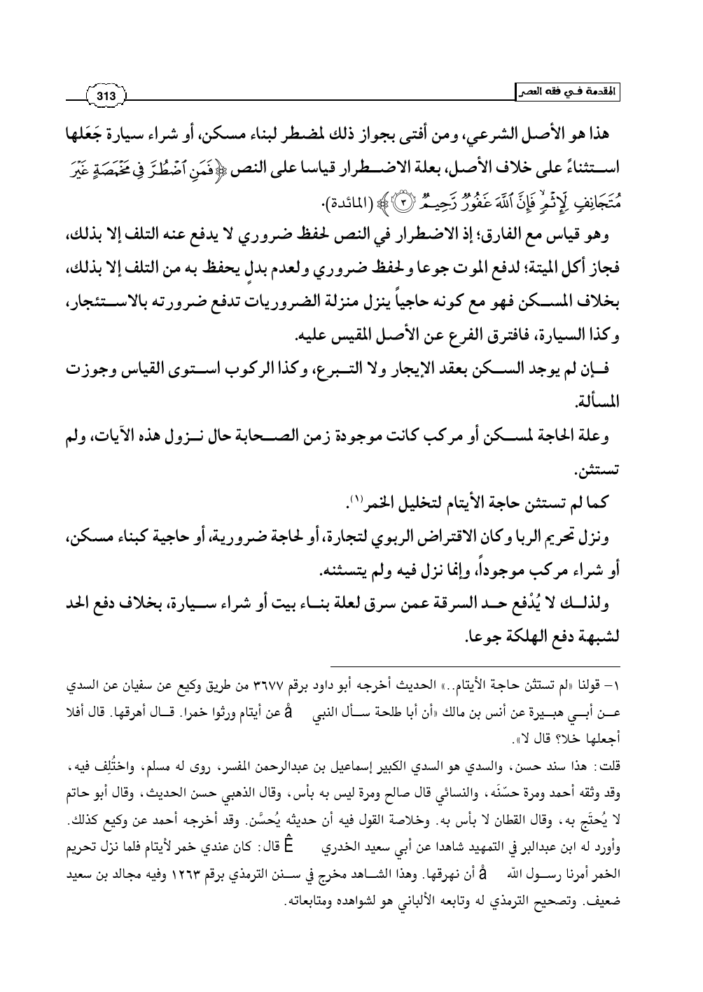 هذا هو الأصل الشرعي، ومن أفتى بجواز ذلك لمضطر لبناء مسكن، أو شراء سيارة جَعَلها استثناءً على خلاف الأصل، بعلة الاضطرار قياسا على النص (فَمَنِ اضْطُرَّ فِي مَخْمَصَةٍ غَيْرَ مُتَجَانِفٍ لِّإِثْمٍ فَإِنَّ اللَّهَ غَفُورٌ رَّحِيمٌ) (المائدة: 3).