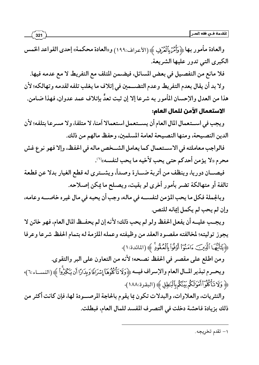 وبالجملة فكل ما يحب المؤمن لنفسه في ماله، وجب أن يحبه في مال غيره خاصه وعامه، وإن لم يحب لم يكمل إيمانه للنص.