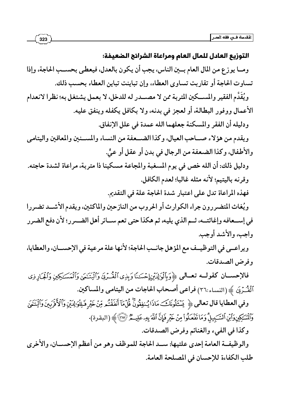 التوزيع العادل للمال العام ومراعاة الشرائح الضعيفة: