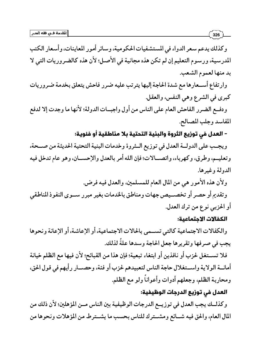 - العدل في توزيع الثروة والبنية التحتية بلا مناطقية أو فئوية: