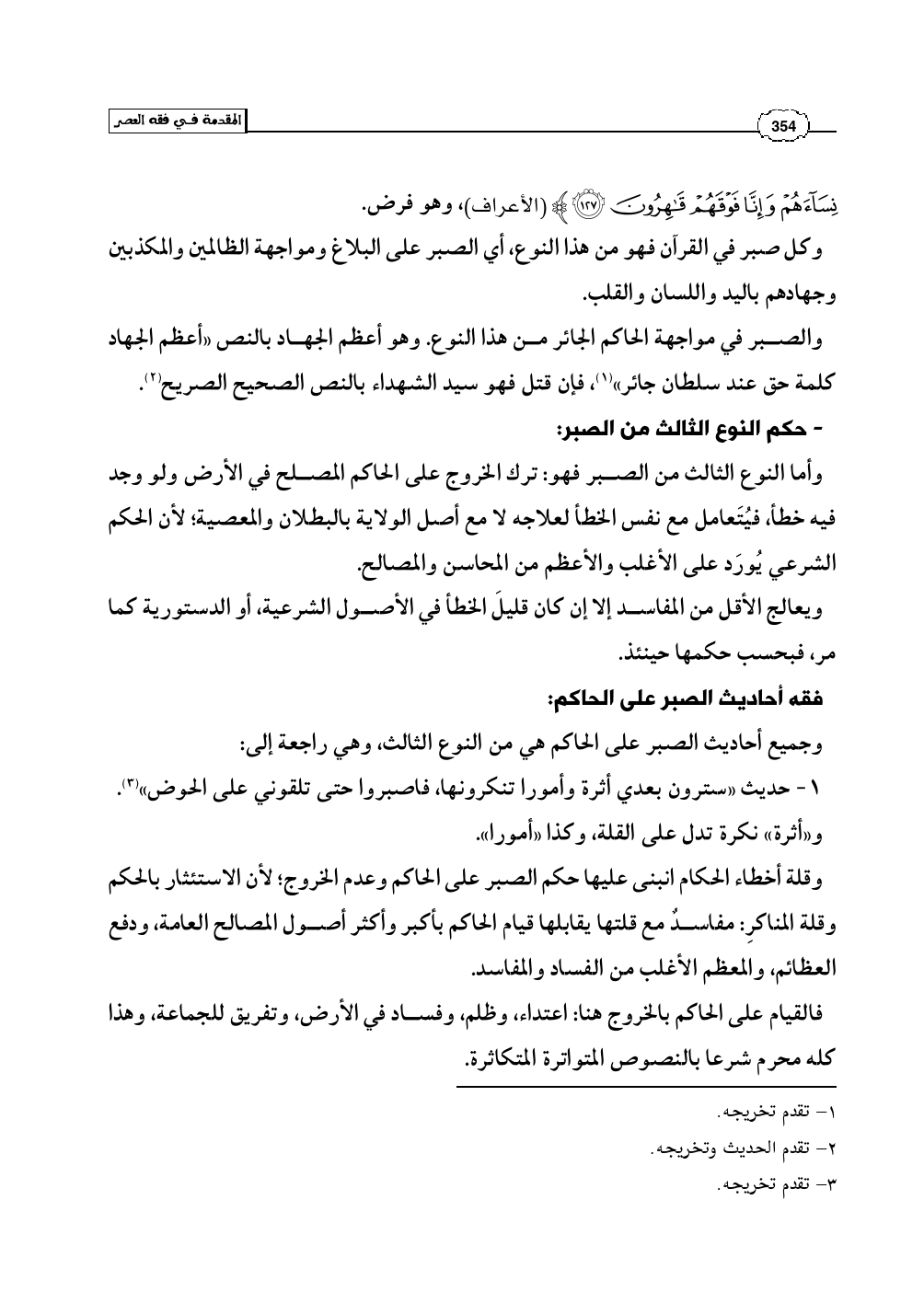 وجميع أحاديث الصبر على الحاكم هي من النوع الثالث، وهي راجعة إلى: