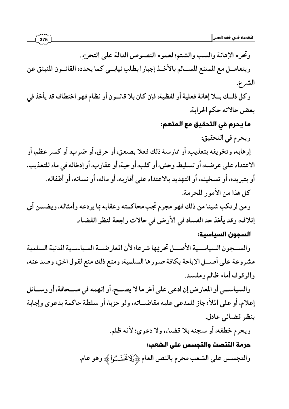 وتحرم الإهانة والسب والشتم؛ لعموم النصوص الدالة على التحريم.