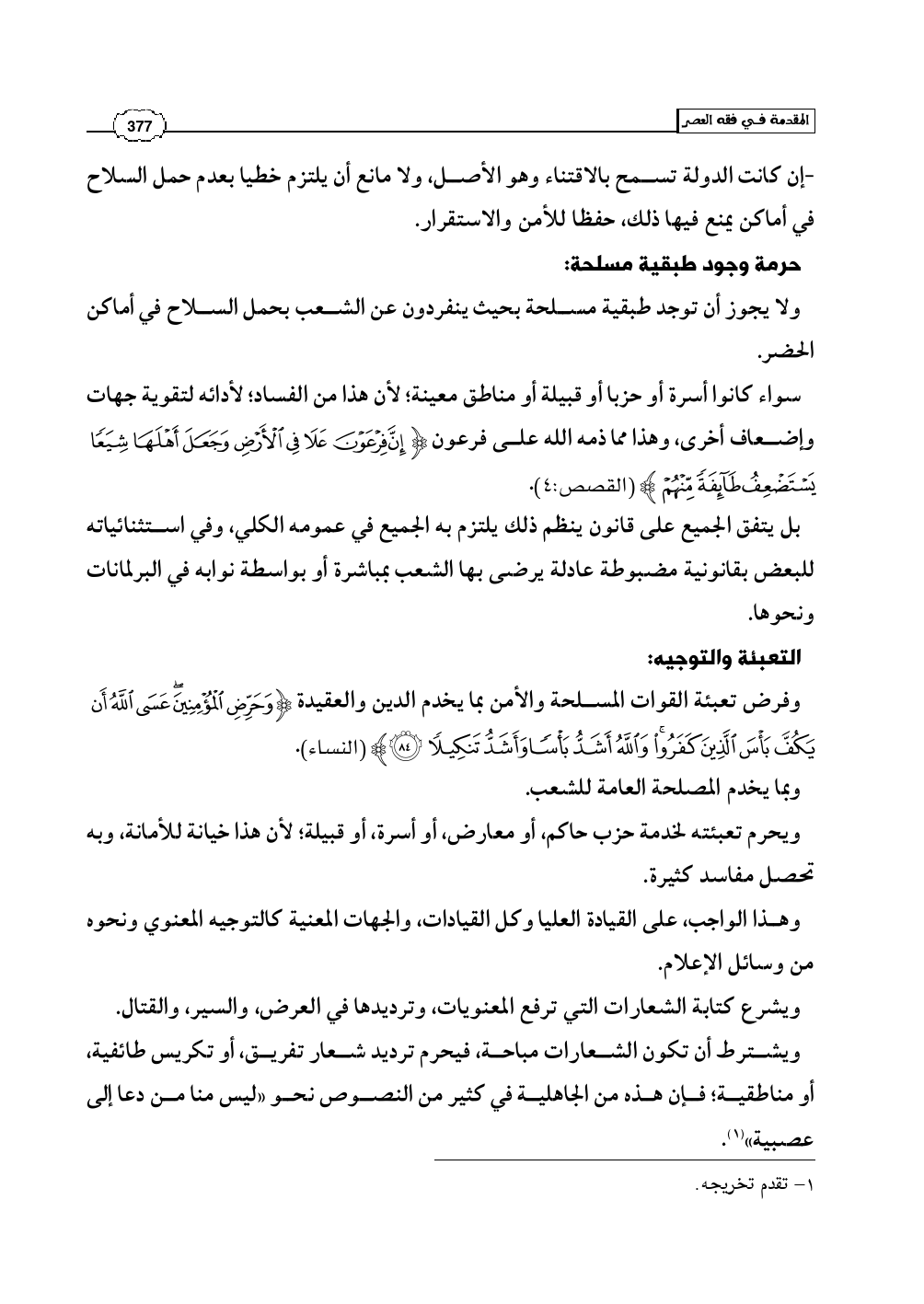 حرمة وجود طبقية مسلحة:
