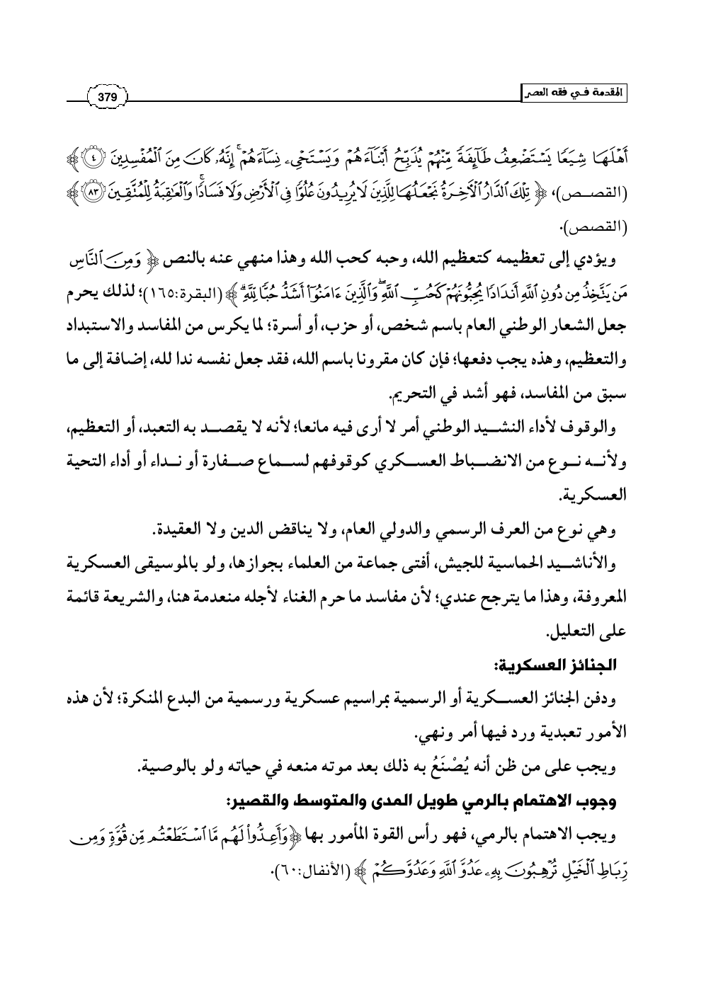 ويجب الاهتمام بالرمي، فهو رأس القوة المأمور بها (وَأَعِدُّوا لَهُم مَّا اسْتَطَعْتُم مِّن قُوَّةٍ وَمِن رِّبَاطِ الْخَيْلِ تُرْهِبُونَ بِهِ عَدْوَّ اللَّهِ وَعَدُوَّكُمْ) (الأنفال: 60).