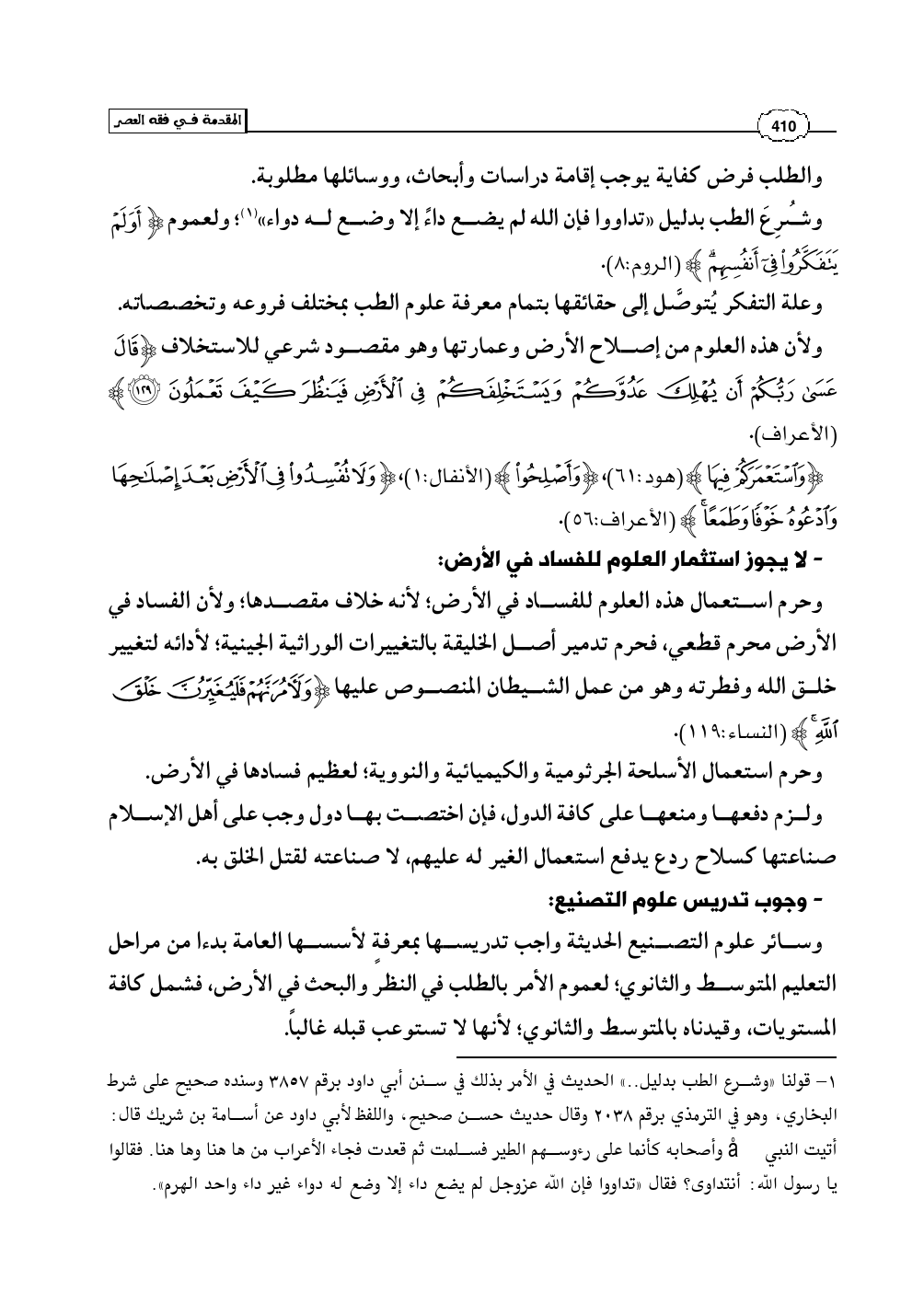 - لا يجوز استثمار العلوم للفساد في الأرض: