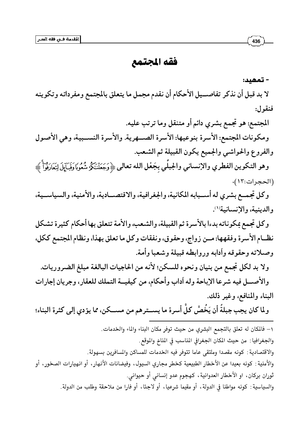 لا بد قبل أن نذكر تفاصيل الأحكام أن نقدم مجمل ما يتعلق بالمجتمع ومفرداته وتكوينه فنقول: