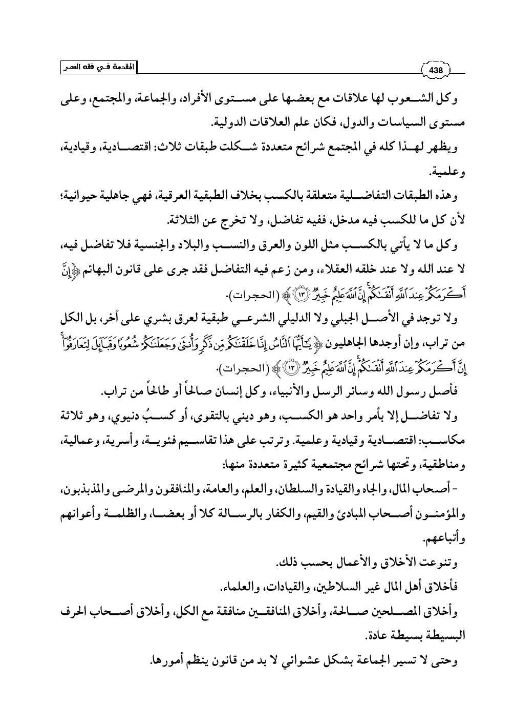 وهذه الطبقات التفاضلية متعلقة بالكسب بخلاف الطبقية العرقية، فهي جاهلية حيوانية؛ لأن كل ما للكسب فيه مدخل، ففيه تفاضل، ولا تخرج عن الثلاثة.