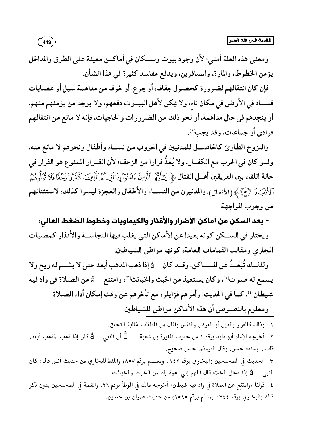 - بعد السكن عن أماكن الأضرار والأقذار والكيماويات وخطوط الضغط العالي: