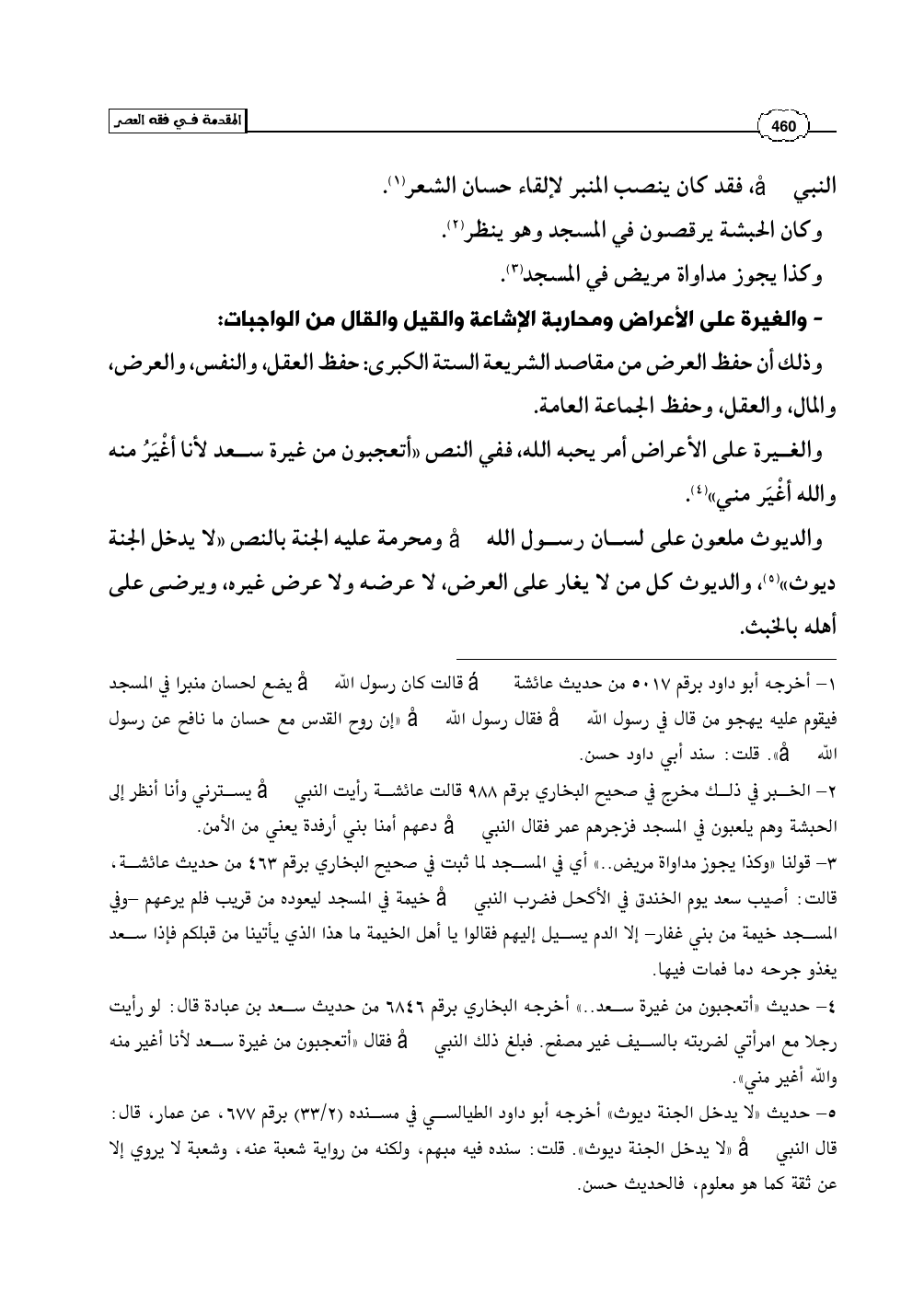(¬2) - الخبر في ذلك مخرج في صحيح البخاري برقم 988 قالت عائشة رأيت النبي صلى الله عليه وسلم يسترني وأنا أنظر إلى الحبشة وهم يلعبون في المسجد فزجرهم عمر فقال النبي صلى الله عليه وسلم دعهم أمنا بني أرفدة يعني من الأمن.