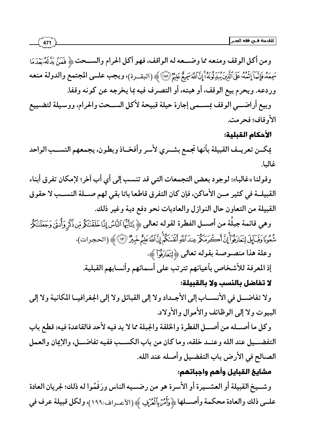 ولا تفاضل في الأنساب إلى الأجداد ولا إلى القبائل ولا إلى الجغرافيا المكانية ولا إلى البيوت ولا إلى الوظائف والأموال والأولاد.