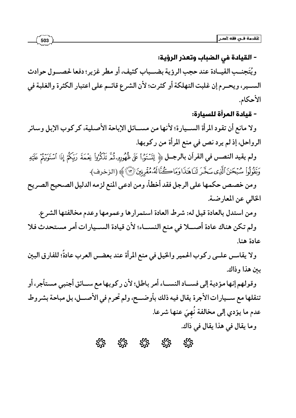 ولا يقاس على ركوب الحمير والخيل في منع المرأة عند بعض العرب عادةً؛ للفارق البين بين هذا وذاك.