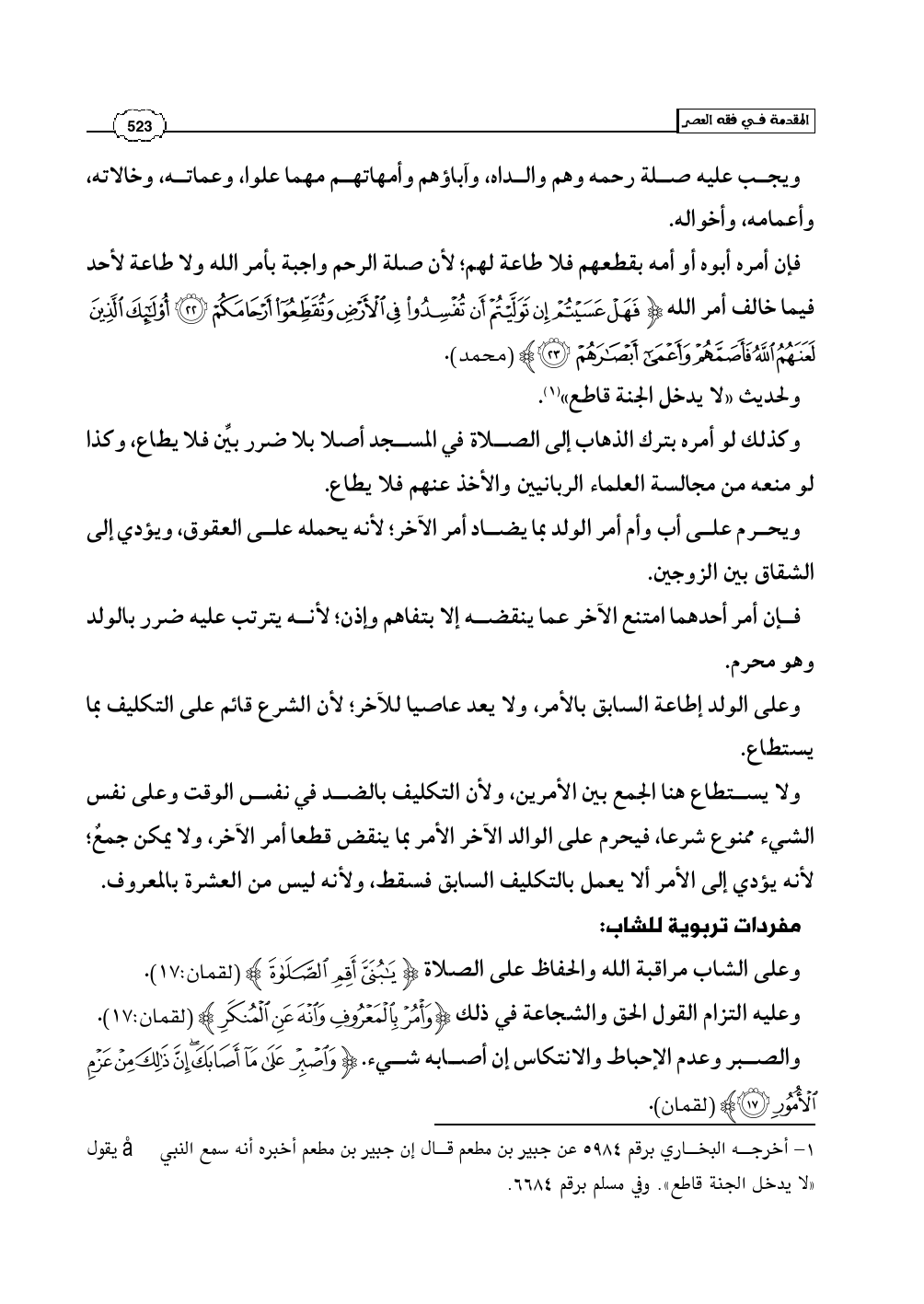 ولحديث «لا يدخل الجنة قاطع» (¬1).