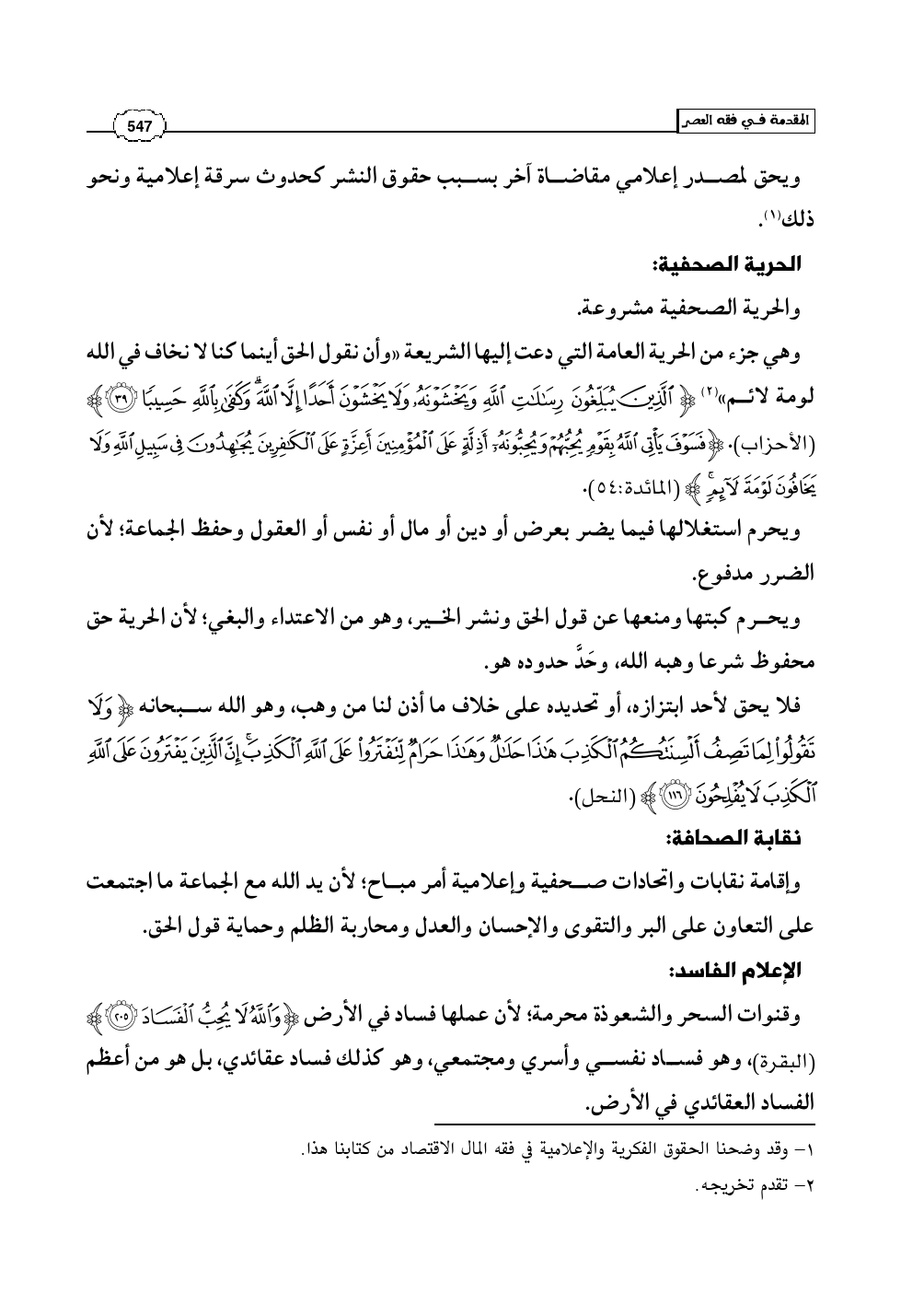 (¬1) - وقد وضحنا الحقوق الفكرية والإعلامية في فقه المال الاقتصاد من كتابنا هذا.