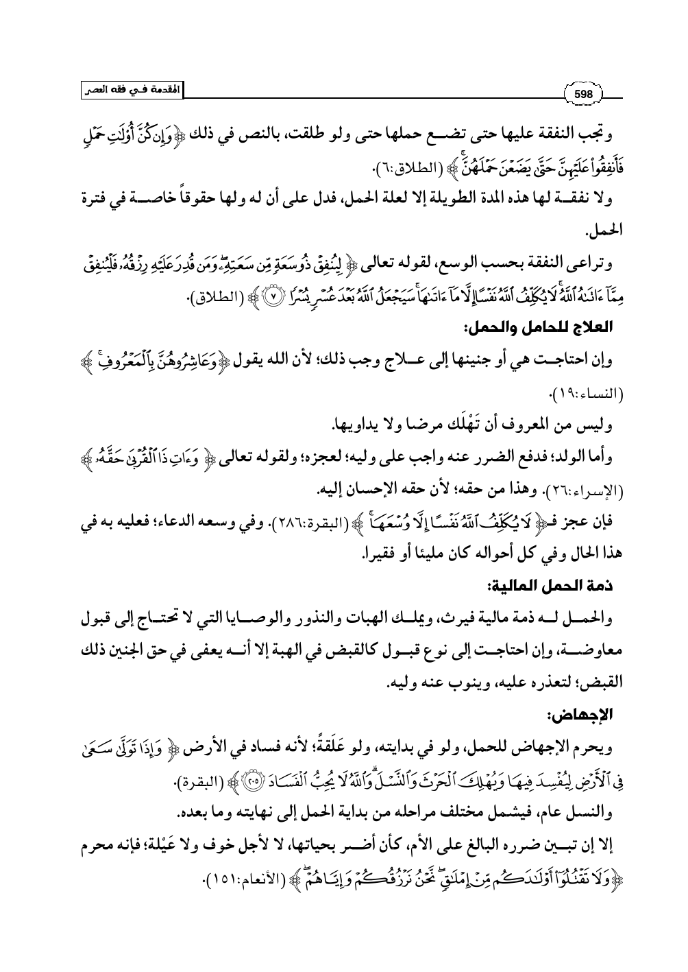 ولا نفقة لها هذه المدة الطويلة إلا لعلة الحمل، فدل على أن له ولها حقوقاً خاصة في فترة الحمل.