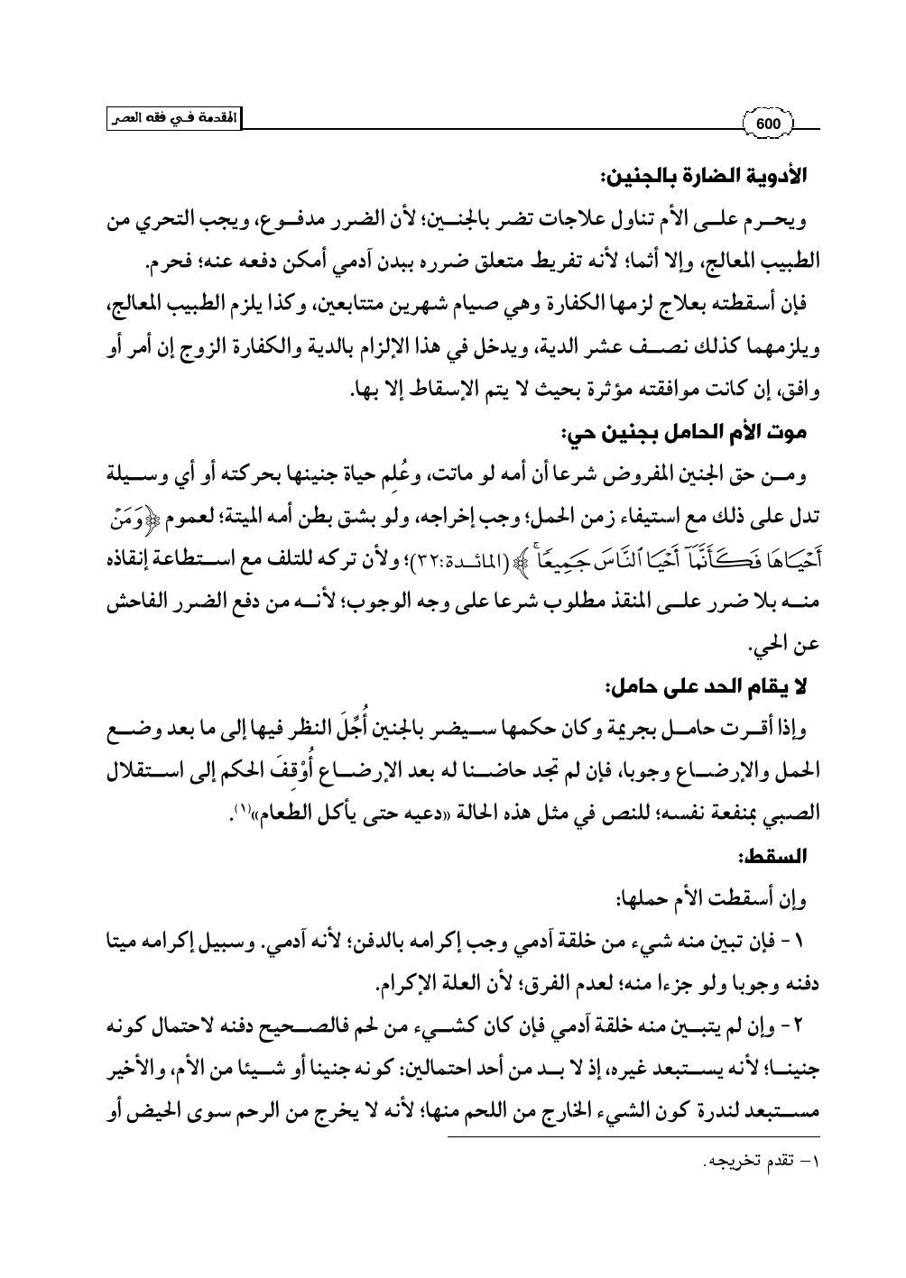 ومن حق الجنين المفروض شرعا أن أمه لو ماتت، وعُلِم حياة جنينها بحركته أو أي وسيلة تدل على ذلك مع استيفاء زمن الحمل؛ وجب إخراجه، ولو بشق بطن أمه الميتة؛ لعموم (وَمَنْ أَحْيَاهَا فَكَأَنَّمَا أَحْيَا النَّاسَ جَمِيعًا) (المائدة: 32)؛ ولأن تركه للتلف مع استطاعة إنقاذه منه بلا ضرر على المنقذ مطلوب شرعا على وجه الوجوب؛ لأنه من دفع الضرر الفاحش عن الحي.
