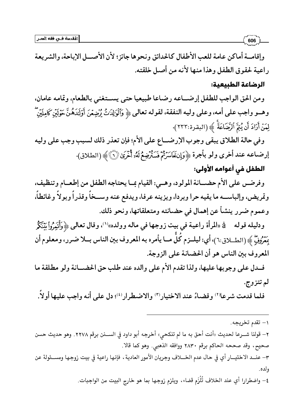 (¬2) - قولنا شرعا لحديث «أنت أحق به ما لم تنكحي» أخرجه أبو داود في السنن برقم 2278. وهو حديث حسن صحيح، وقد صححه الحاكم برقم 2830 ووافقه الذهبي. وهو كما قالا.