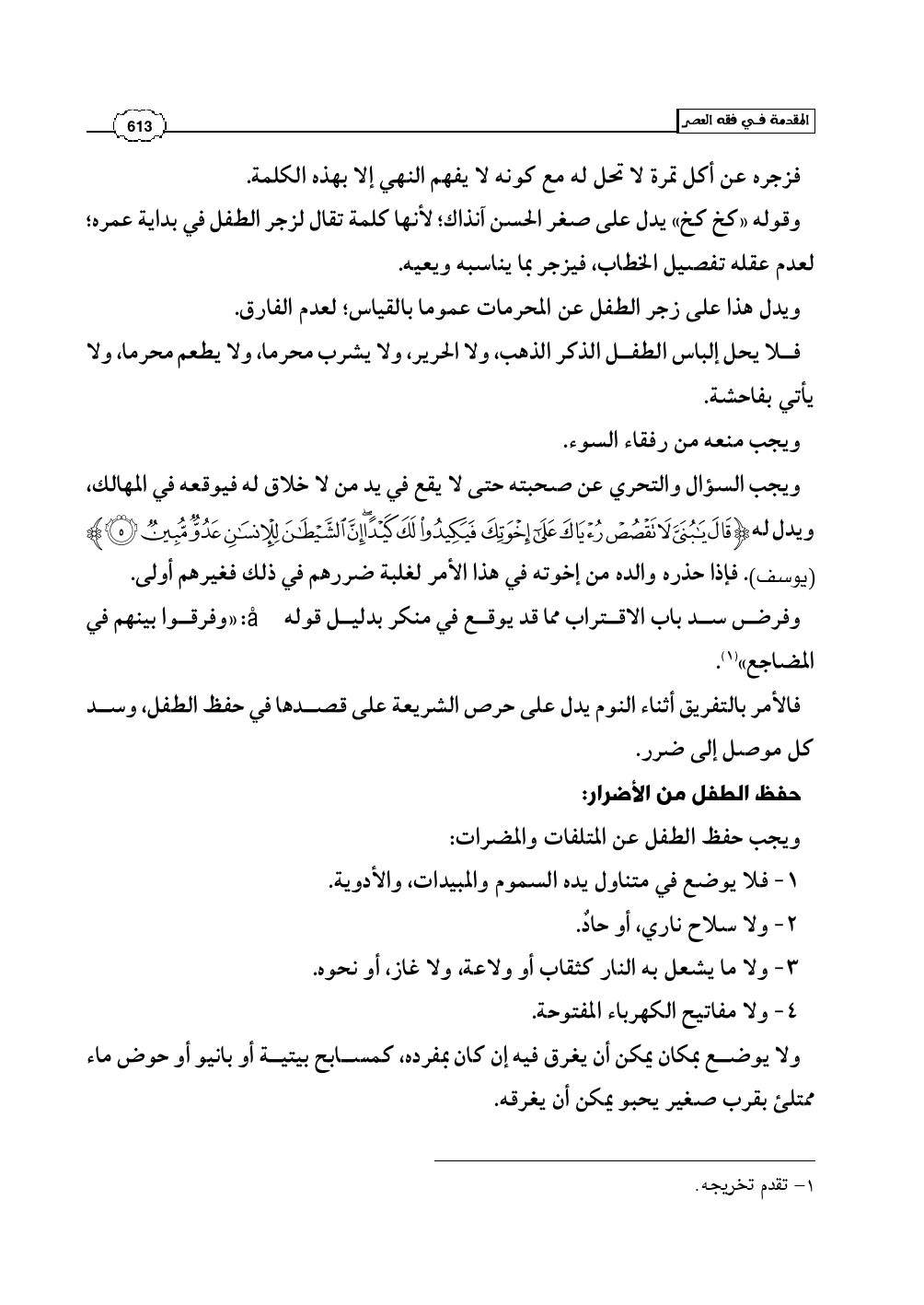 ويجب حفظ الطفل عن المتلفات والمضرات: