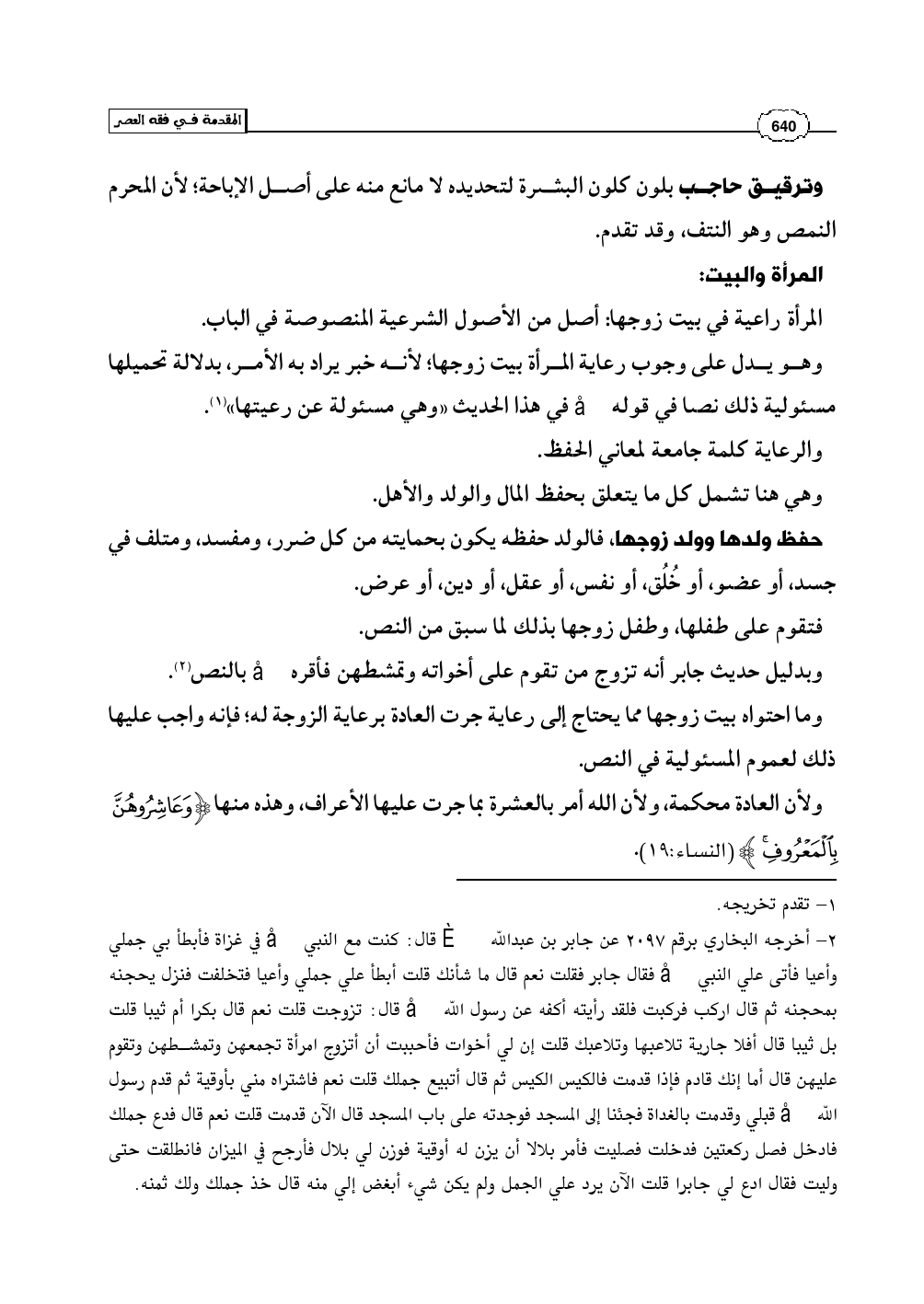 المرأة راعية في بيت زوجها: أصل من الأصول الشرعية المنصوصة في الباب.