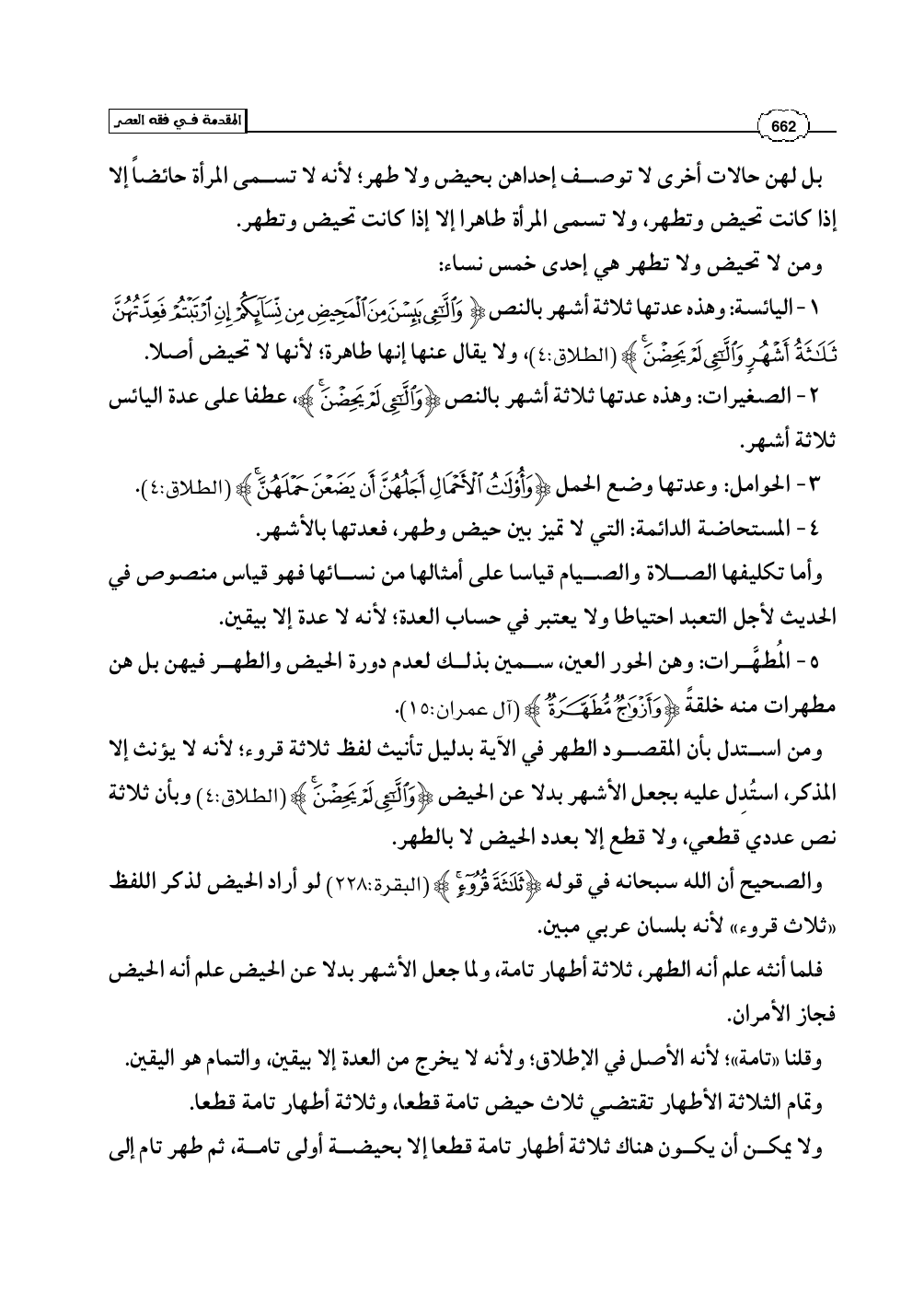 بل لهن حالات أخرى لا توصف إحداهن بحيض ولا طهر؛ لأنه لا تسمى المرأة حائضاً إلا إذا كانت تحيض وتطهر، ولا تسمى المرأة طاهرا إلا إذا كانت تحيض وتطهر.