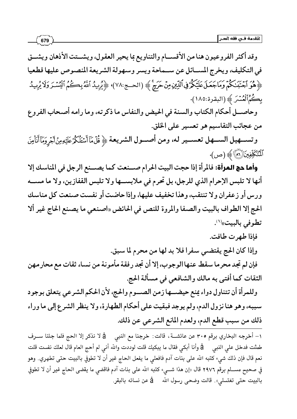 وحاصل أحكام الكتاب والسنة في الحيض والنفاس ما ذكرته، وما رامه أصحاب الفروع من عجائب التقاسيم هو تعسير على الخلق.
