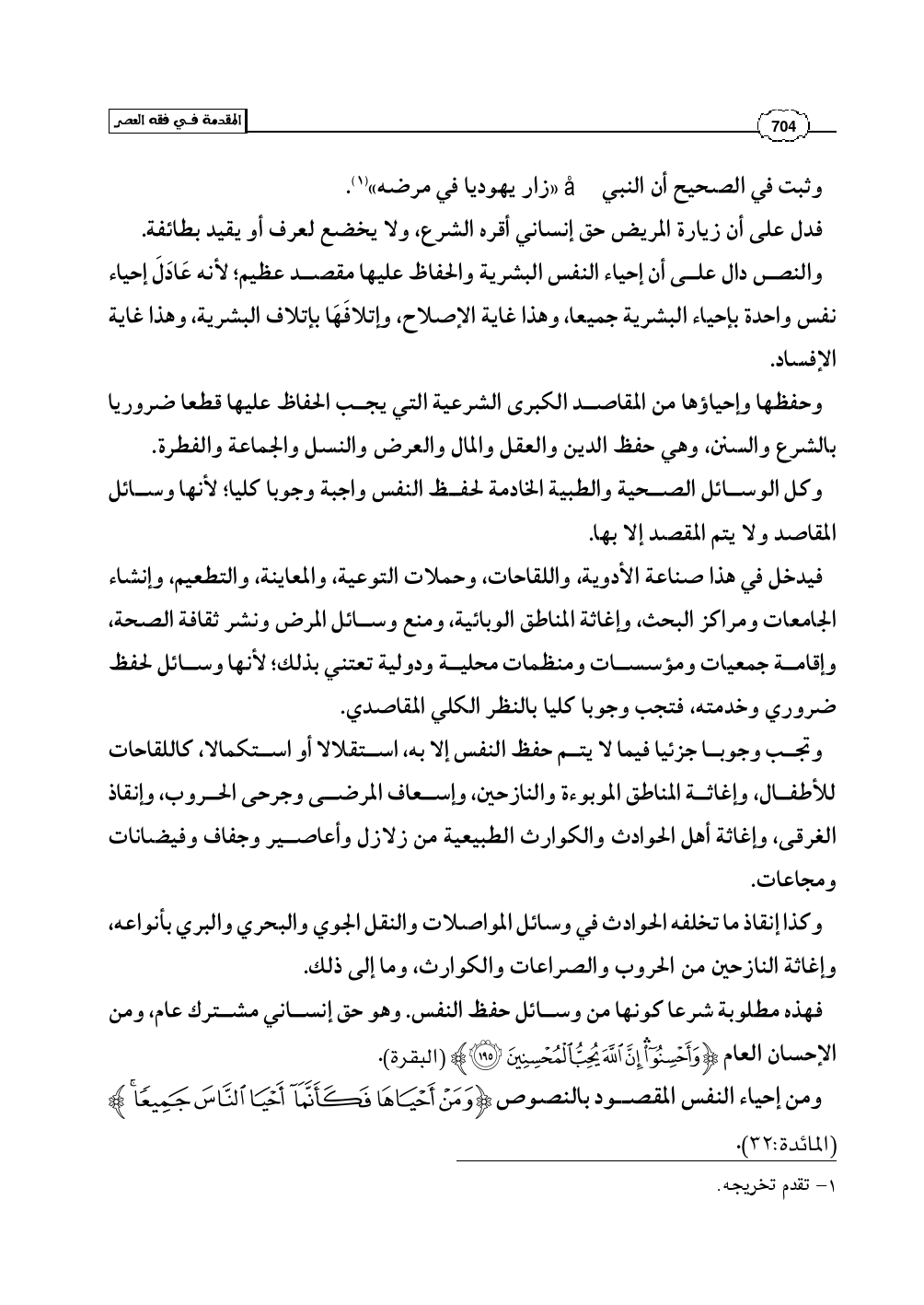 فدل على أن زيارة المريض حق إنساني أقره الشرع، ولا يخضع لعرف أو يقيد بطائفة.