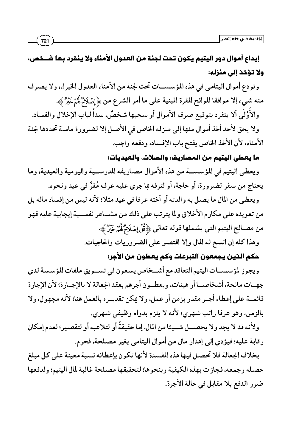 وتودع أموال اليتامى في هذه المؤسسات تحت لجنة من الأمناء العدول الخبراء، ولا يصرف منه شيء إلا موافقا للوائح المقرة المبنية على ما أمر الشرع من (إِصْلاَحٌ لَّهُمْ خَيْرٌ).