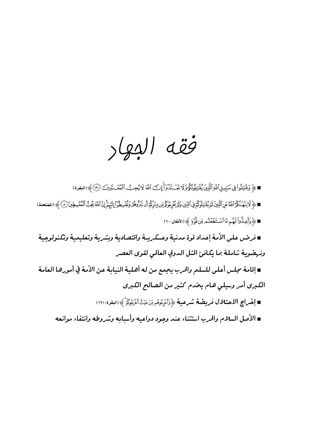 * (وَقَاتِلُوا فِي سَبِيلِ اللَّهِ الَّذِينَ يُقَاتِلُونَكُمْ وَلاَ تَعْتَدُوا إِنَّ اللَّهَ لاَ يُحِبِّ الْمُعْتَدِينَ) (البقرة: 190)