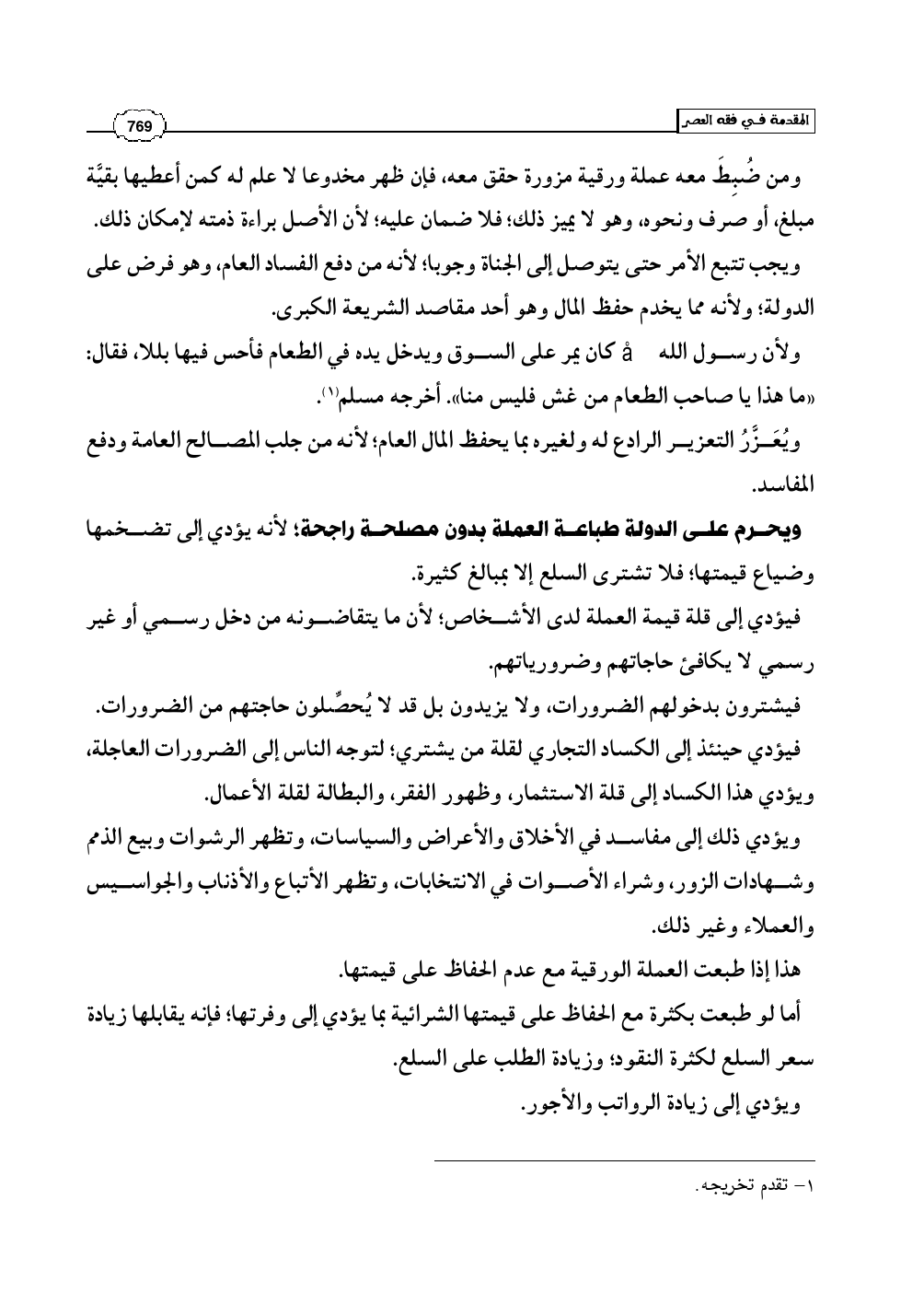 ويحرم على الدولة طباعة العملة بدون مصلحة راجحة؛ لأنه يؤدي إلى تضخمها وضياع قيمتها؛ فلا تشترى السلع إلا بمبالغ كثيرة.