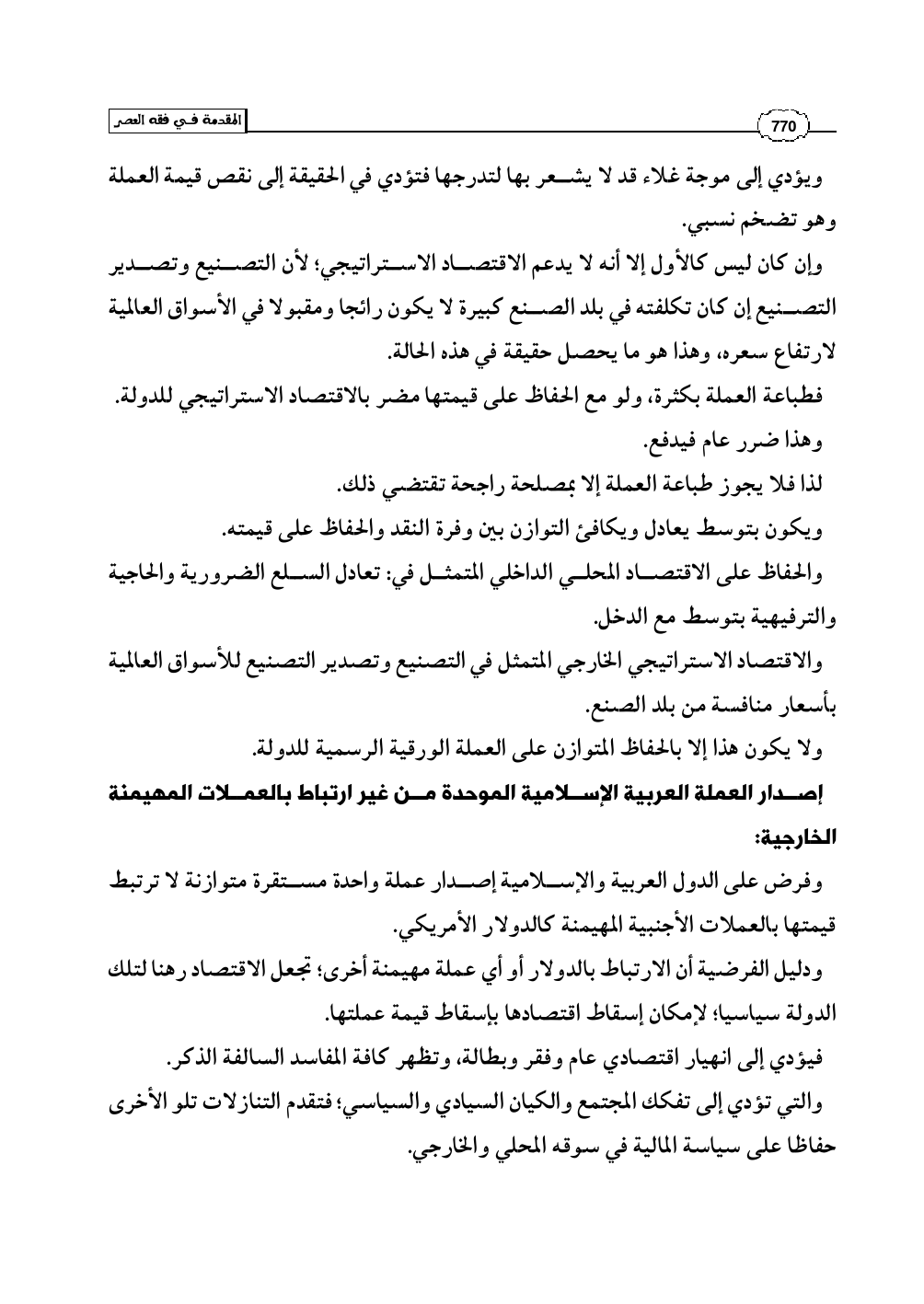 وفرض على الدول العربية والإسلامية إصدار عملة واحدة مستقرة متوازنة لا ترتبط قيمتها بالعملات الأجنبية المهيمنة كالدولار الأمريكي.