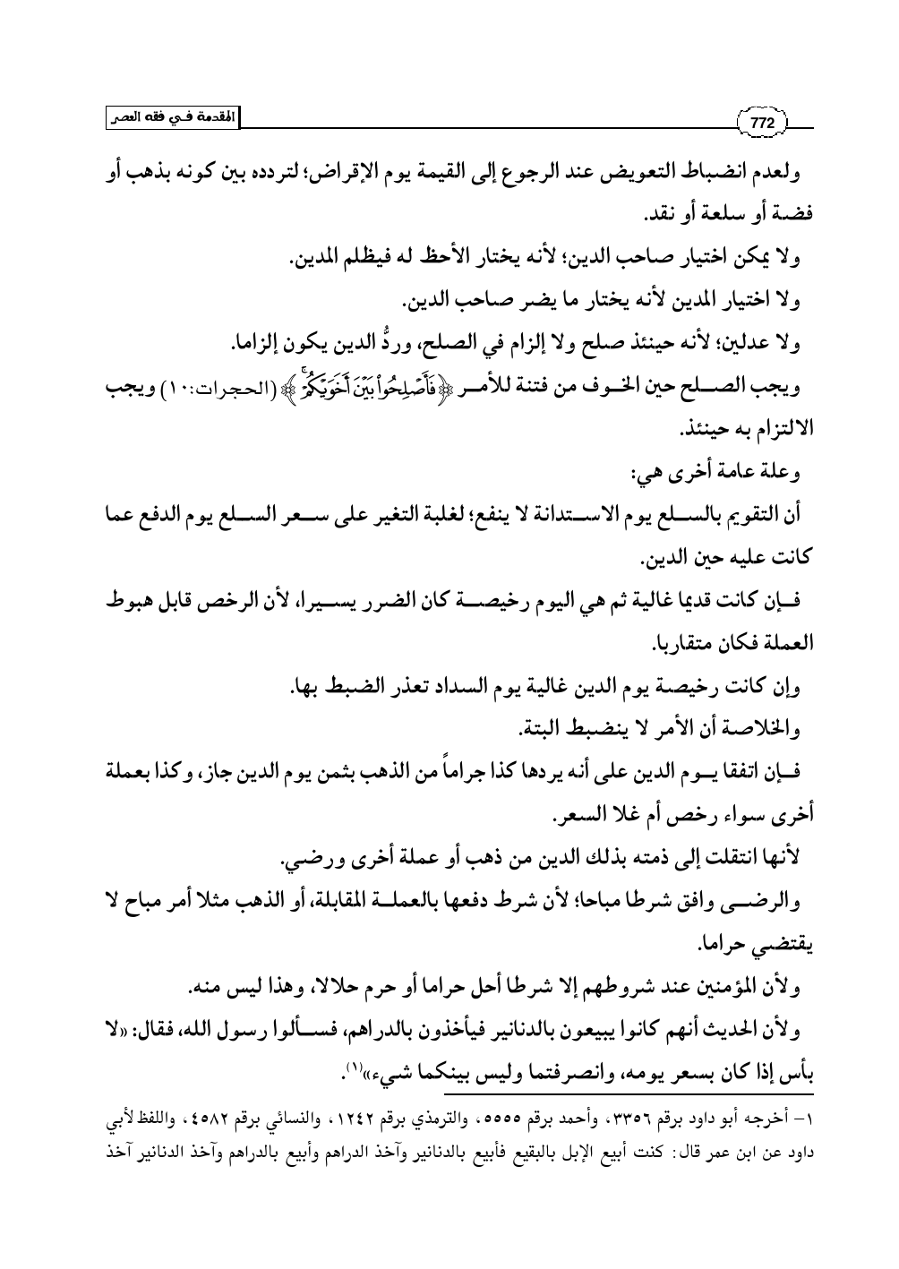وإن كانت رخيصة يوم الدين غالية يوم السداد تعذر الضبط بها.
