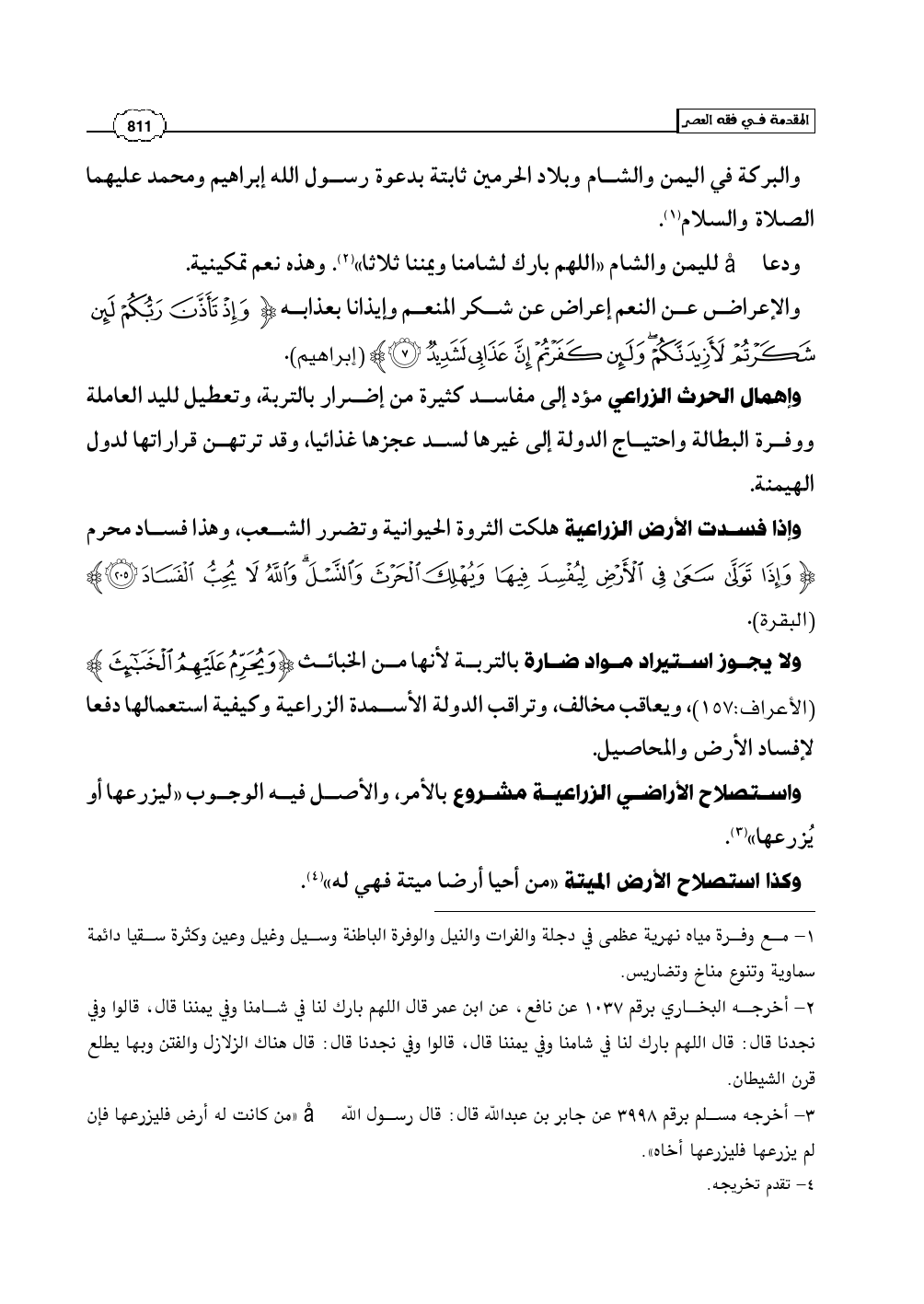 والبركة في اليمن والشام وبلاد الحرمين ثابتة بدعوة رسول الله إبراهيم ومحمد عليهما الصلاة والسلام (¬1).
