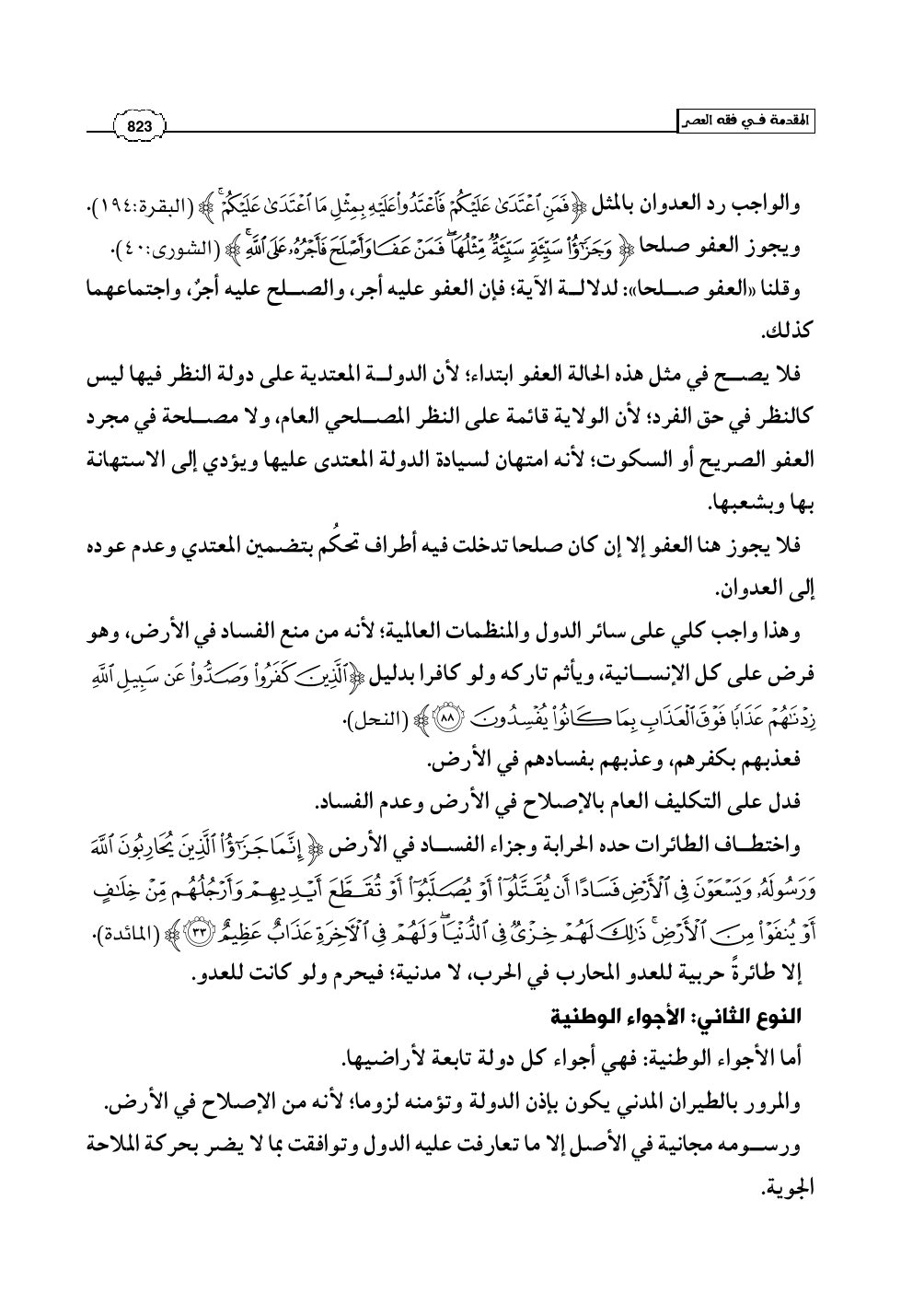 فلا يصح في مثل هذه الحالة العفو ابتداء؛ لأن الدولة المعتدية على دولة النظر فيها ليس كالنظر في حق الفرد؛ لأن الولاية قائمة على النظر المصلحي العام، ولا مصلحة في مجرد العفو الصريح أو السكوت؛ لأنه امتهان لسيادة الدولة المعتدى عليها ويؤدي إلى الاستهانة بها وبشعبها.