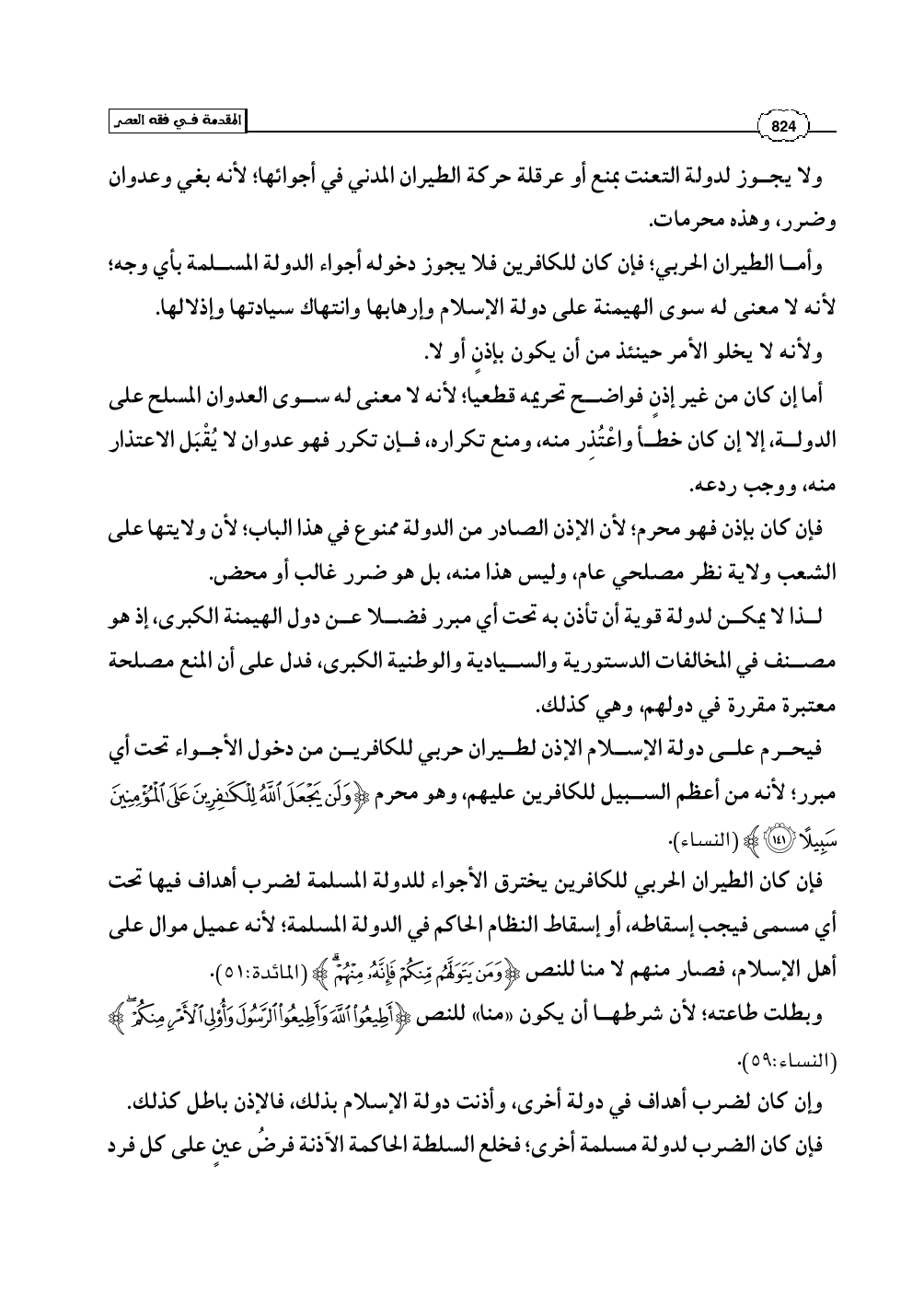 فيحرم على دولة الإسلام الإذن لطيران حربي للكافرين من دخول الأجواء تحت أي مبرر؛ لأنه من أعظم السبيل للكافرين عليهم، وهو محرم (وَلَن يَجْعَلَ اللَّهُ لِلْكَافِرِينَ عَلَى الْمُؤْمِنِينَ سَبِيلاً) (النساء: 141).