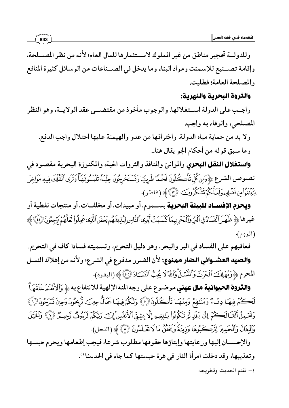 واستغلال النقل البحري والموانئ والمنافذ والثروات الحية، والمكنوزة البحرية مقصود في نصوص الشرع (وَمِن كُلٍّ تَأْكُلُونَ لَحْمًا طَرِيًّا وَتَسْتَخْرِجُونَ حِلْيَةً تَلْبَسُونَهَا وَتَرَى الْفُلْكَ فِيهِ مَوَاخِرَ لِتَبْتَغُوا مِن فَضْلِهِ وَلَعَلَّكُمْ تَشْكُرُونَ) (فاطر: 12).