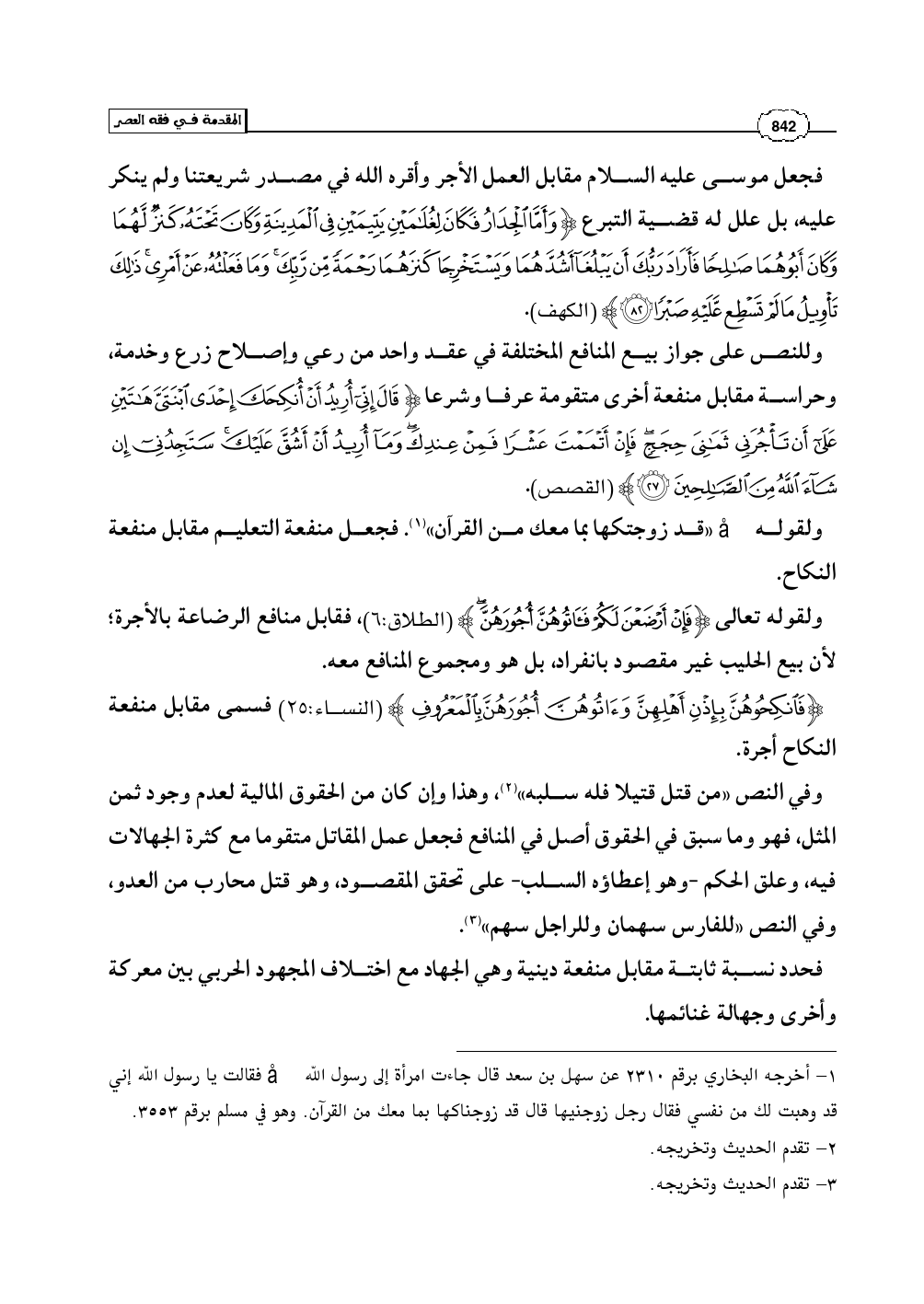 فحدد نسبة ثابتة مقابل منفعة دينية وهي الجهاد مع اختلاف المجهود الحربي بين معركة وأخرى وجهالة غنائمها.