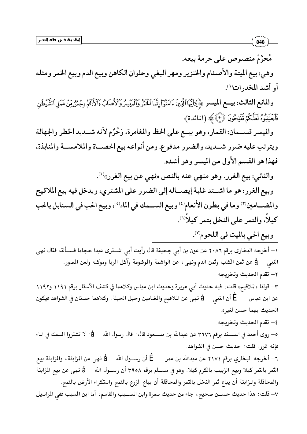 (¬3) - قولنا «الملاقيح» قلت: فيه حديث أبي هريرة وحديث ابن عباس وكلاهما في كشف الأستار برقم 1191 و 1192 عن ابن عباس رضي الله عنهما أن النبي صلى الله عليه وسلم نهى عن الملاقيح والمضامين وحبل الحبلة. وكلاهما حسنان في الشواهد فيكون الحديث بهما حسن لغيره.