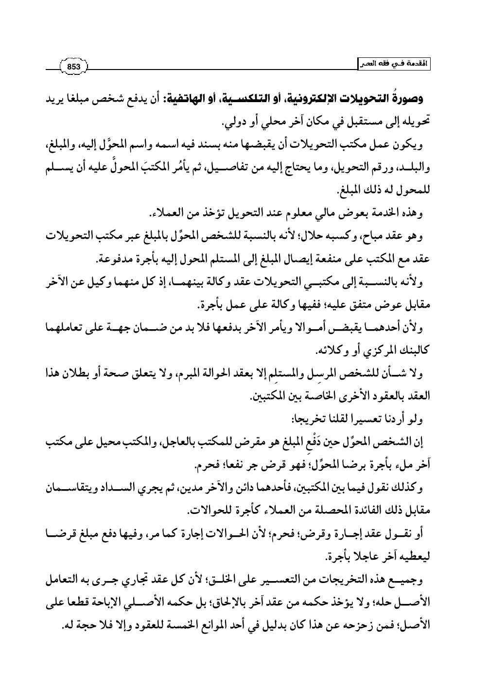 وصورةُ التحويلات الإلكترونية، أو التلكسية، أو الهاتفية: أن يدفع شخص مبلغا يريد تحويله إلى مستقبل في مكان آخر محلي أو دولي.