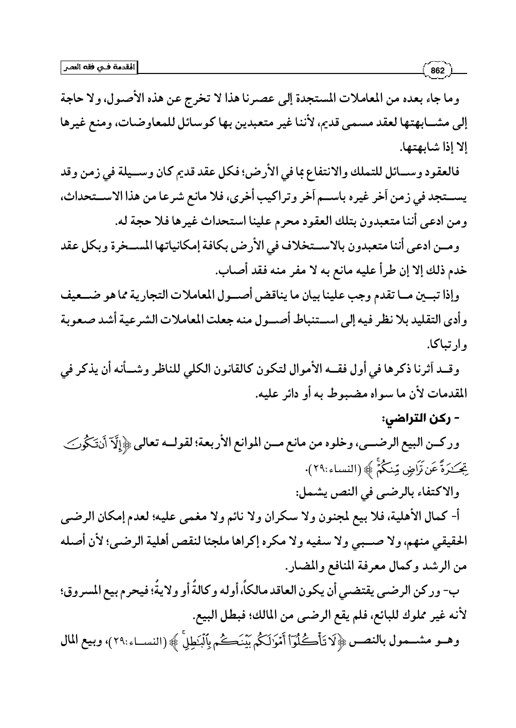 وإذا تبين ما تقدم وجب علينا بيان ما يناقض أصول المعاملات التجارية مما هو ضعيف وأدى التقليد بلا نظر فيه إلى استنباط أصول منه جعلت المعاملات الشرعية أشد صعوبة وارتباكا.