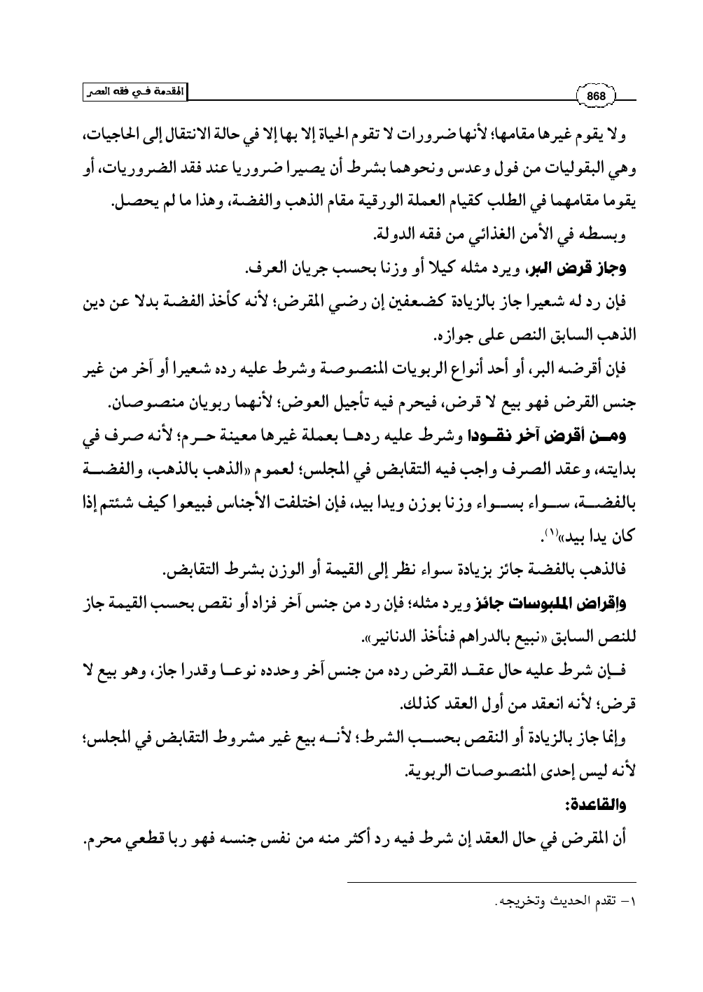 أن المقرض في حال العقد إن شرط فيه رد أكثر منه من نفس جنسه فهو ربا قطعي محرم.
