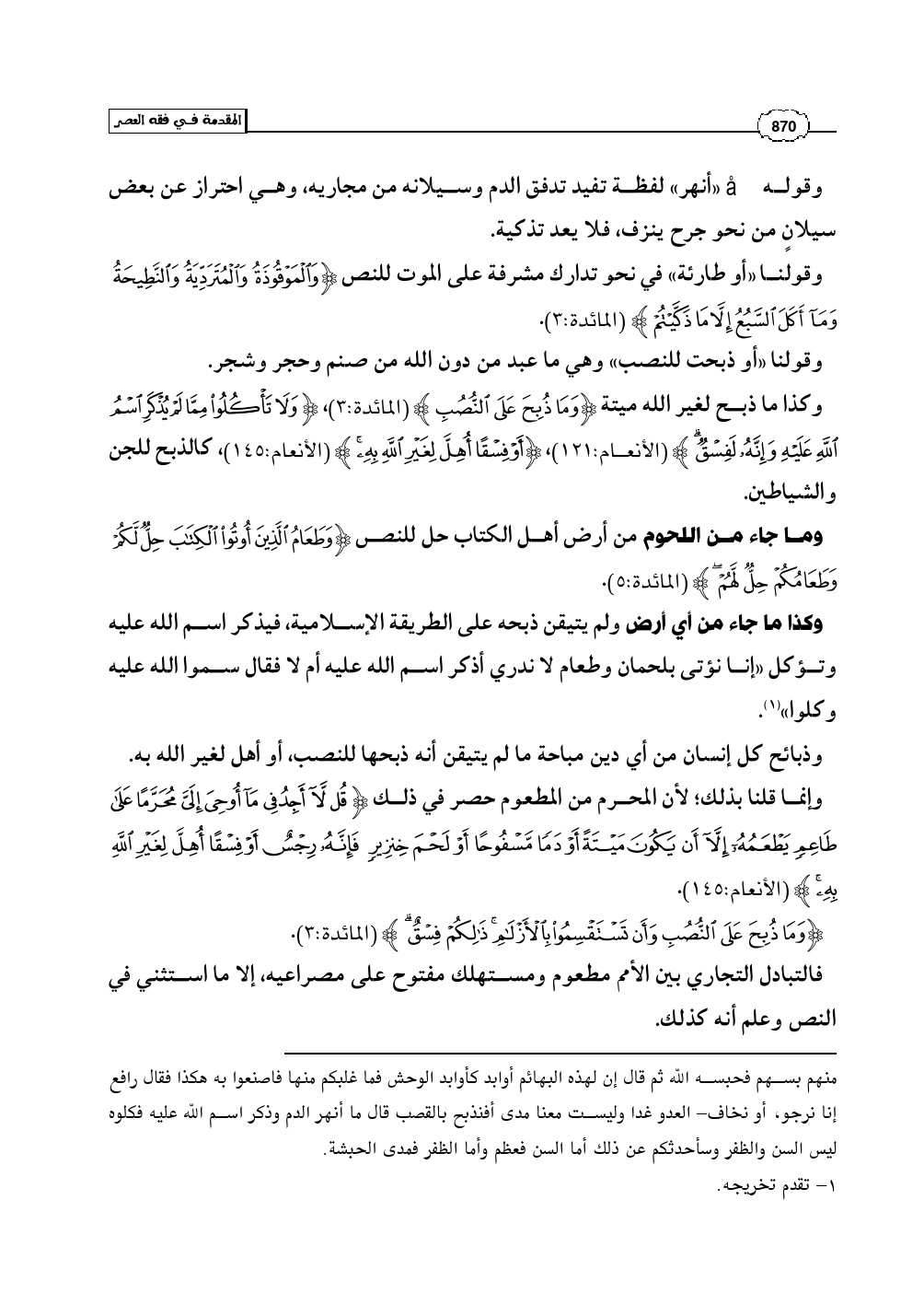 وقوله صلى الله عليه وسلم «أنهر» لفظة تفيد تدفق الدم وسيلانه من مجاريه، وهي احتراز عن بعض سيلانٍ من نحو جرح ينزف، فلا يعد تذكية.