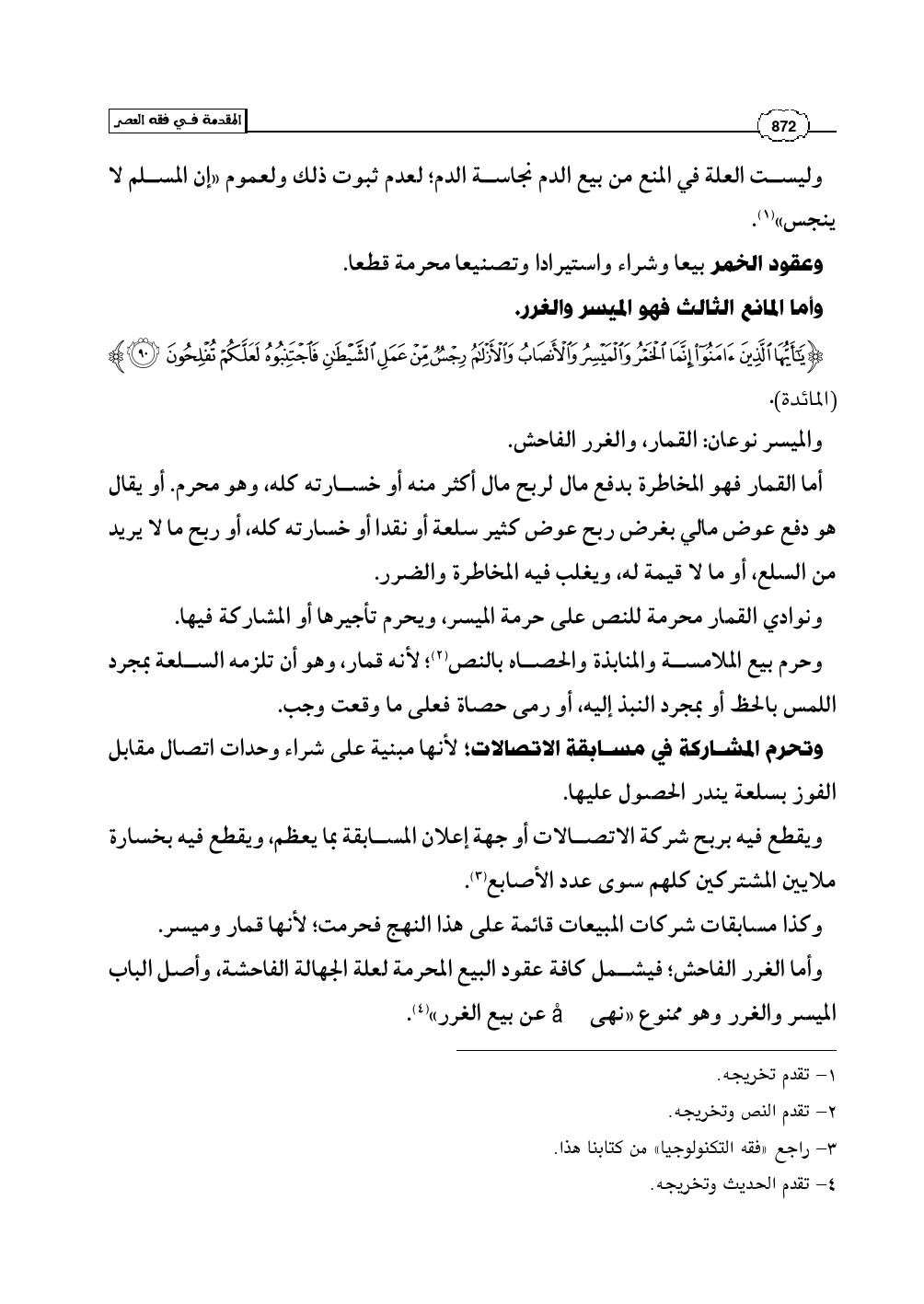 ويقطع فيه بربح شركة الاتصالات أو جهة إعلان المسابقة بما يعظم، ويقطع فيه بخسارة ملايين المشتركين كلهم سوى عدد الأصابع (¬3).